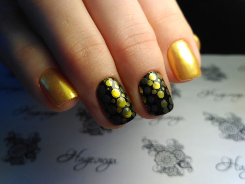 Осенний маникюр просто немыслим без этих оттенков. Вот только холодные желтые оттенки, которые были так популярны летом, лучше заменить на более теплую цветовую гамму, дизайн ногтей при этом может быть разным.