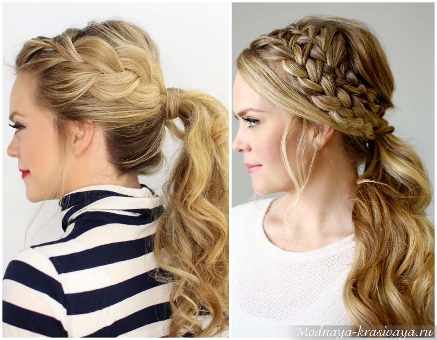 - В классической интерпретации хвост укладывают на одну сторону или сочетают две укладки в одной: греческий хвост фантазийно переплетается с косой;
