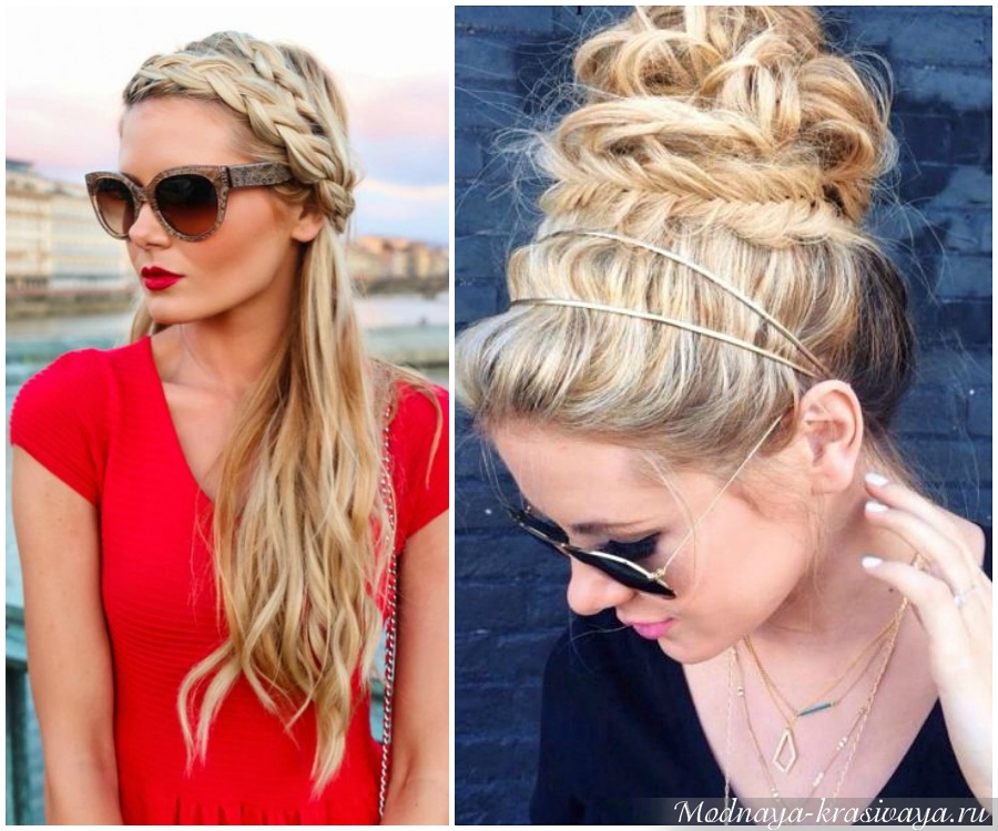 Используете простую повязку — тогда прическу можно украшать декоративными шпильками, и наоборот: декорированная, яркая повязка не сочетается с заколками со стразами и камешками.
