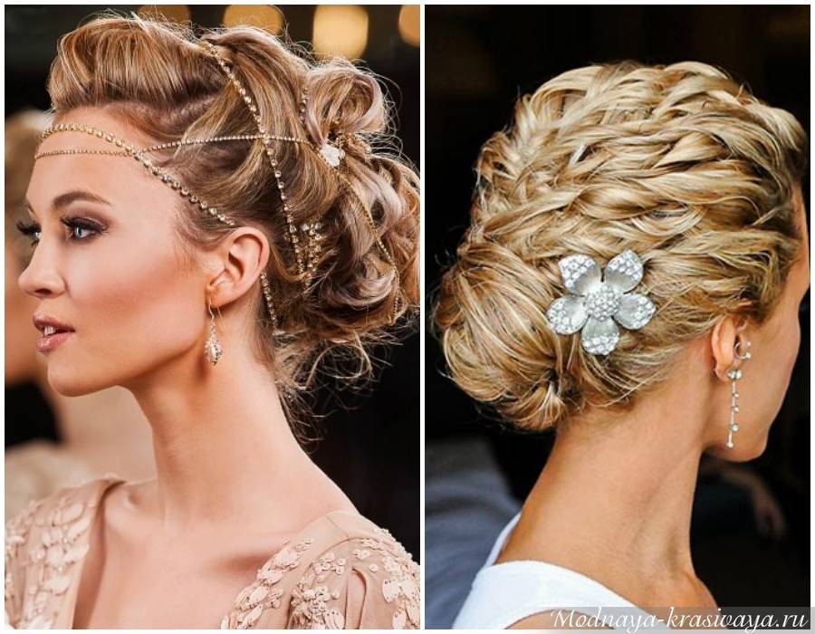 Высокий узел из локонов на затылке отлично подойдет для праздничного события. Украсить укладку можно ободком в греческом стиле, мелкими бусами. Смотрится изумительно.