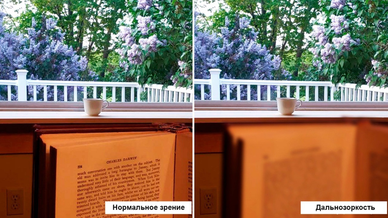 Картинка глазами человека с нормальным зрением и дальнозоркостью. Фото: David Jueng / Wikipedia (CC BY-SA 4.0)