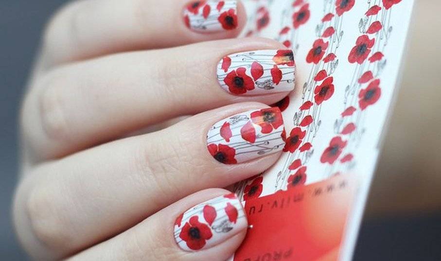 Рисуем маки на ногтях