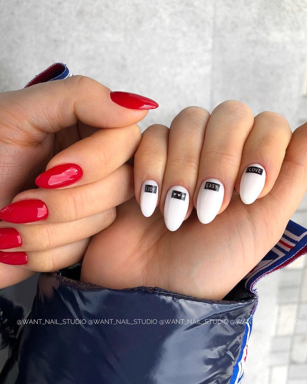 - Яркий красный маникюр на средние и длинные ногти — дизайн 1
