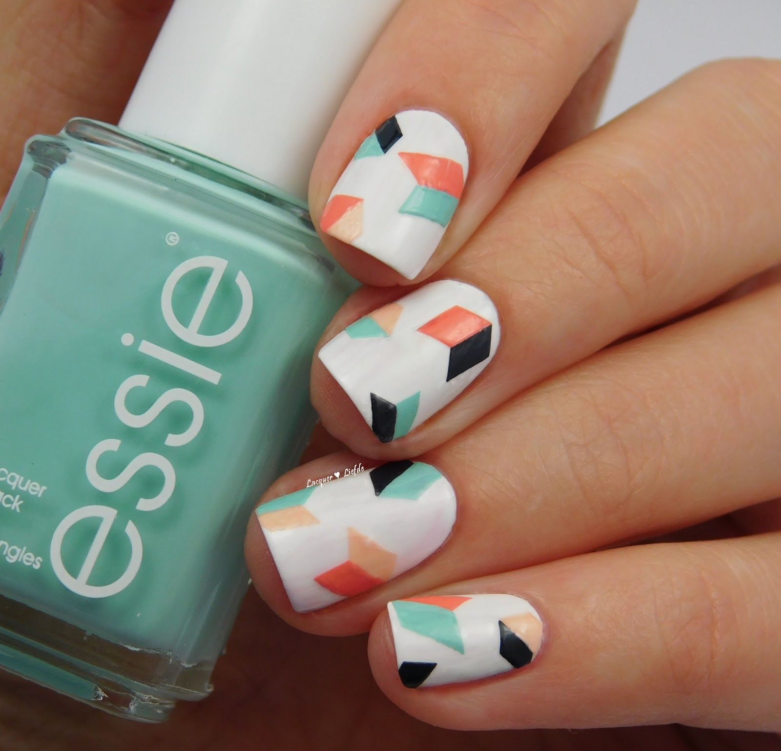 В тренде остается маникюр с геометрическими фигурами. Такой маникюр несложно сделать самому, главное проявить фантазию.