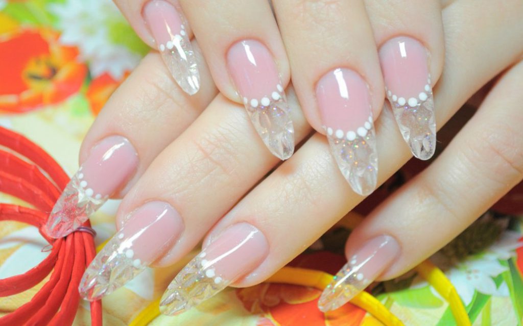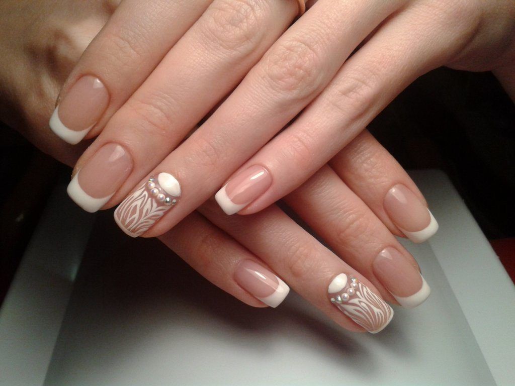 | свадебный френч | Дизайн украшается различными элементами: кружево, вензеля, лепка, стразы, жемчужины, маникюрные ленты и многое другое. |