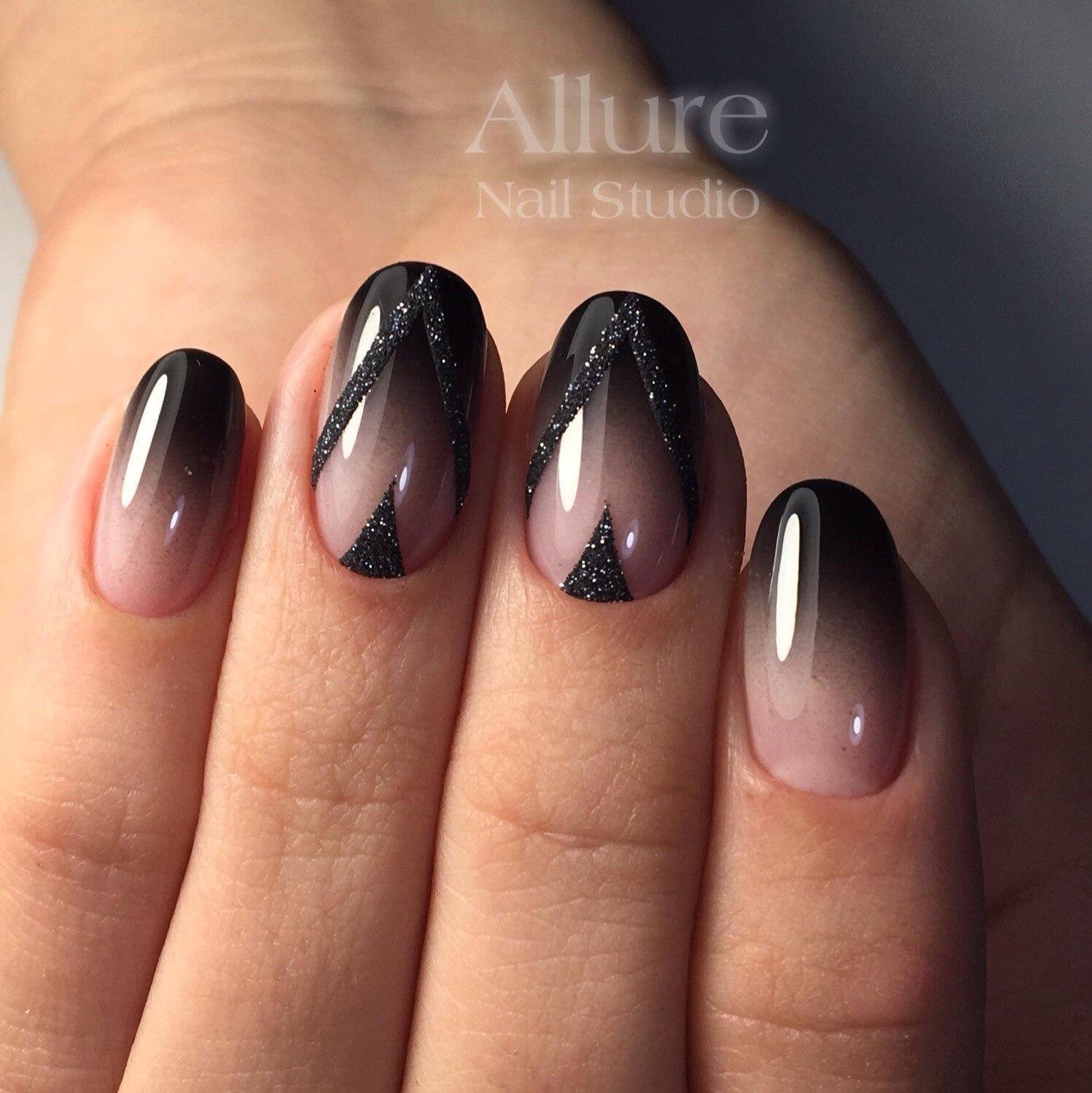 Плавный переход оттенков всегда привлекает внимание, особенно если он выполнен в контрастных тонах. Поэтому лучше всего комбинировать его с нейтральной основой