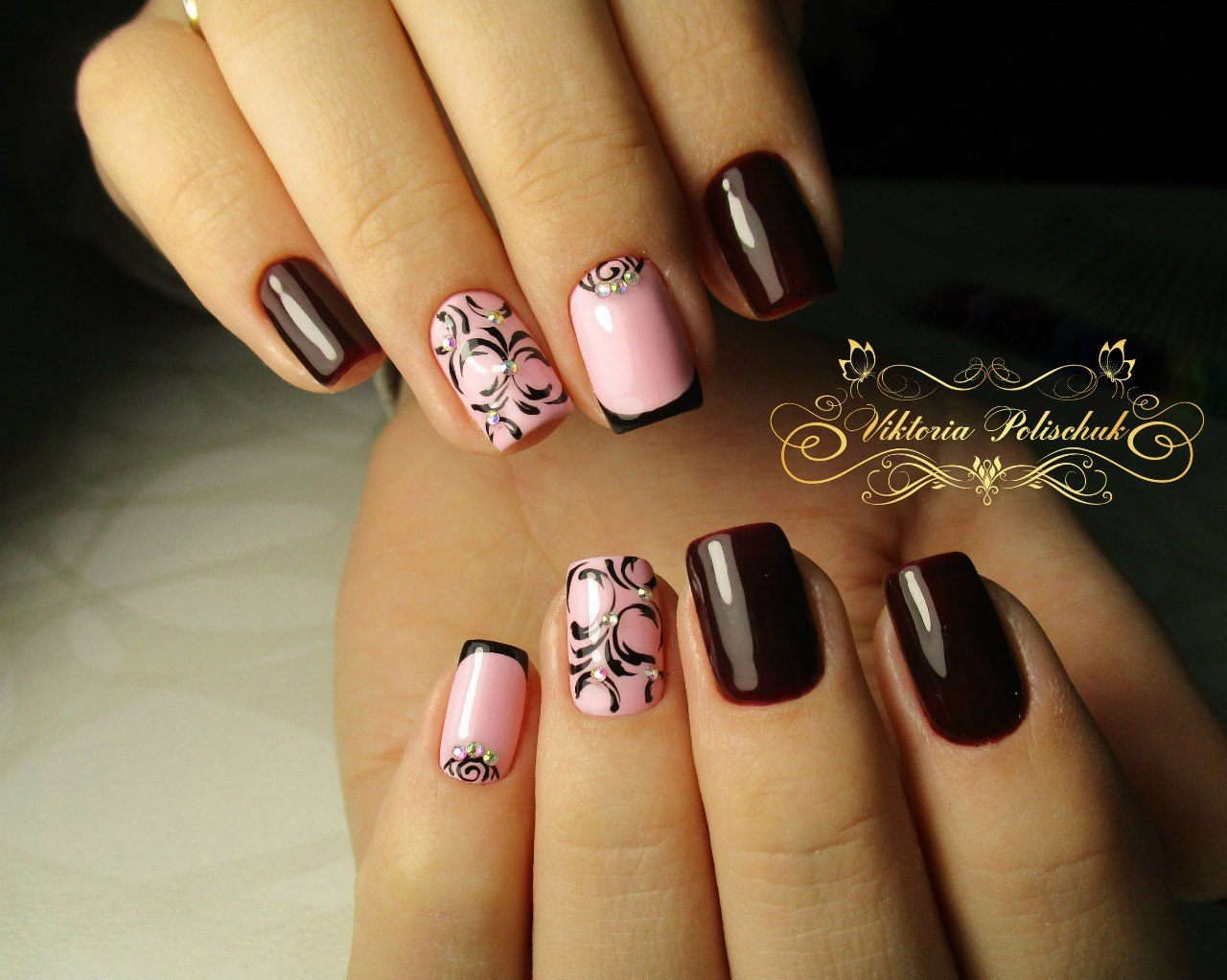 Самый красивый дизайн френча в темных тонах