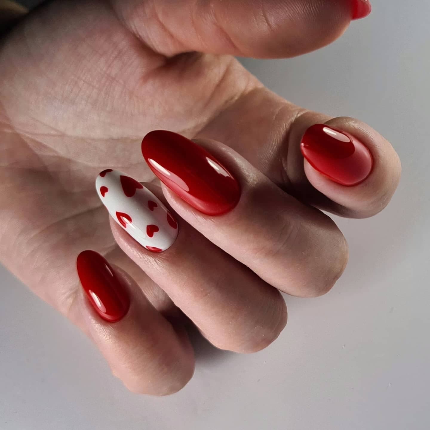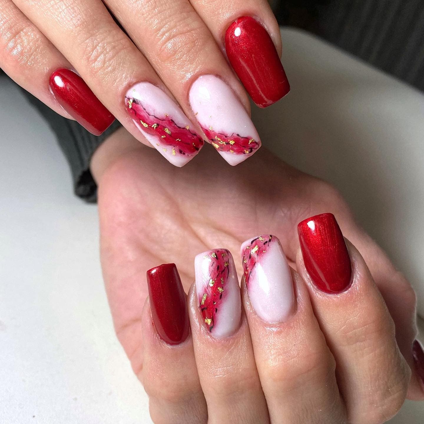 Наиболее популярными вариантами маникюра с сочетанием красного и белого цветов, являются:
