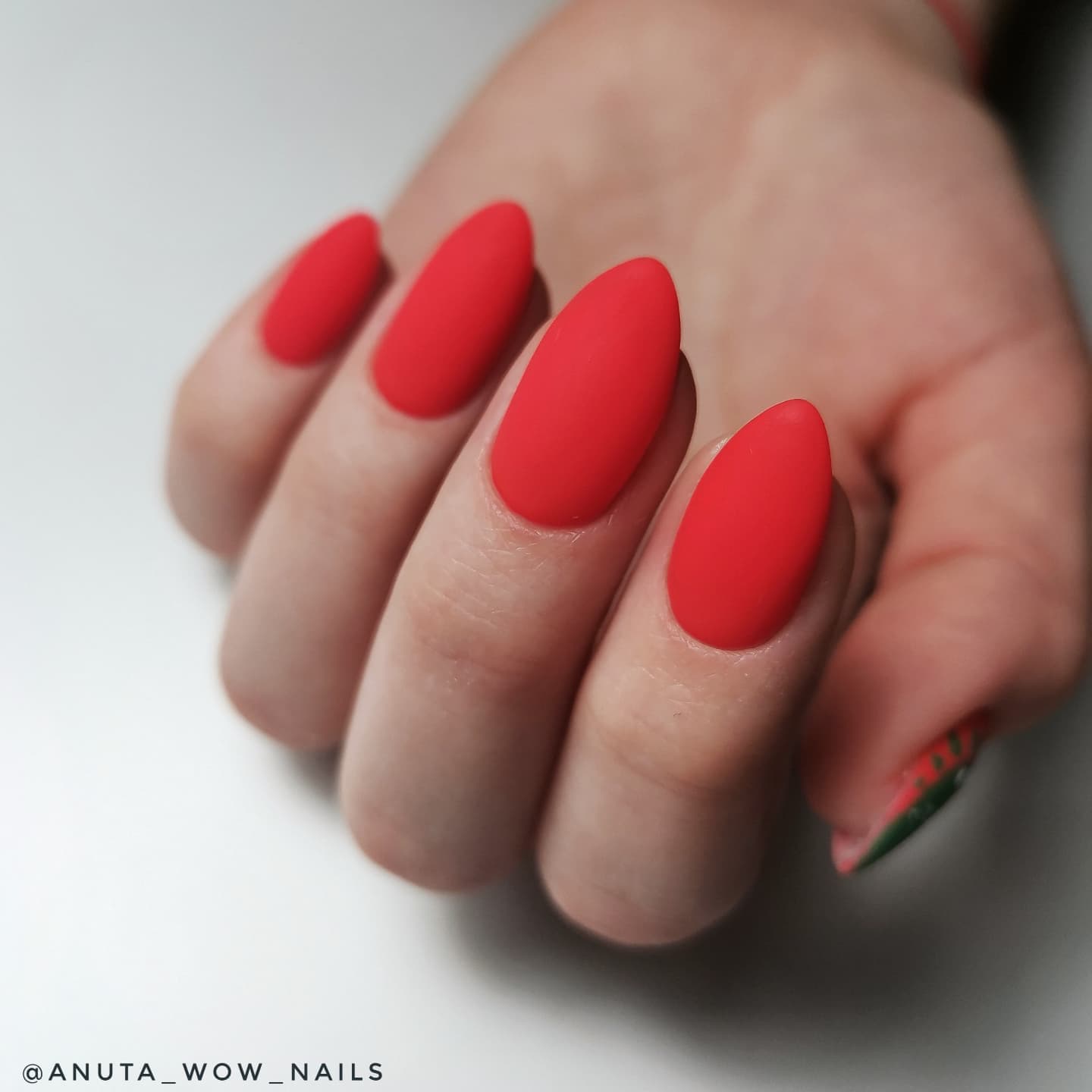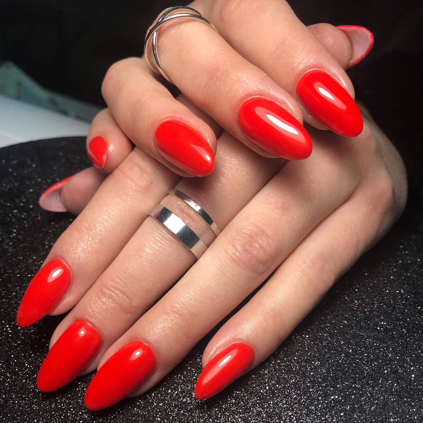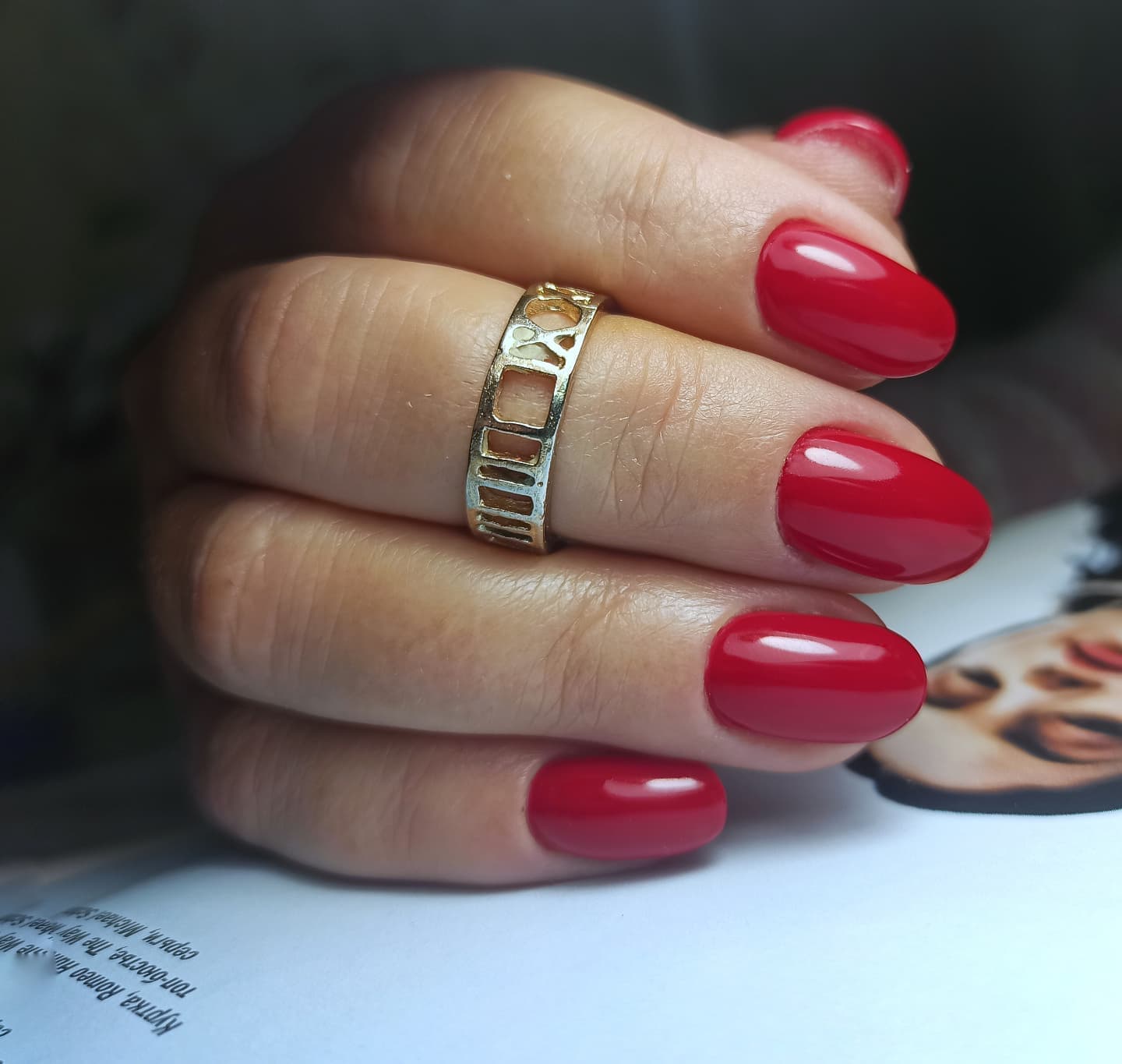 - Если не можешь определиться с формой — выбирай овальный красный маникюр. Овальные ногти сегодня считаются самым универсальным вариантом и хорошо смотрятся на ногтях средней длины.