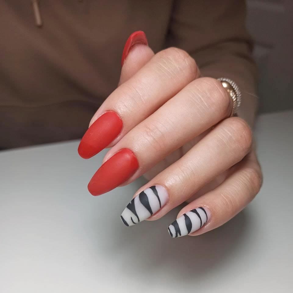 Хотя красный маникюр с белым делали и раньше, в 2021-м на такую композицию взглянули с нового ракурса. Дизайнеры, развившие свое мастерство до небывалых высот, на основе этого сочетания рождают настоящие шедевры. Например, невероятно смотрятся красные ногти с ослепительно белым кружевом. Подобное решение будет эффектно выглядеть в сочетании с нарядом невесты: с одной стороны, красный маникюр заявит о большой любви и страсти, с другой, и тема чистоты, невинности будет раскрыта.