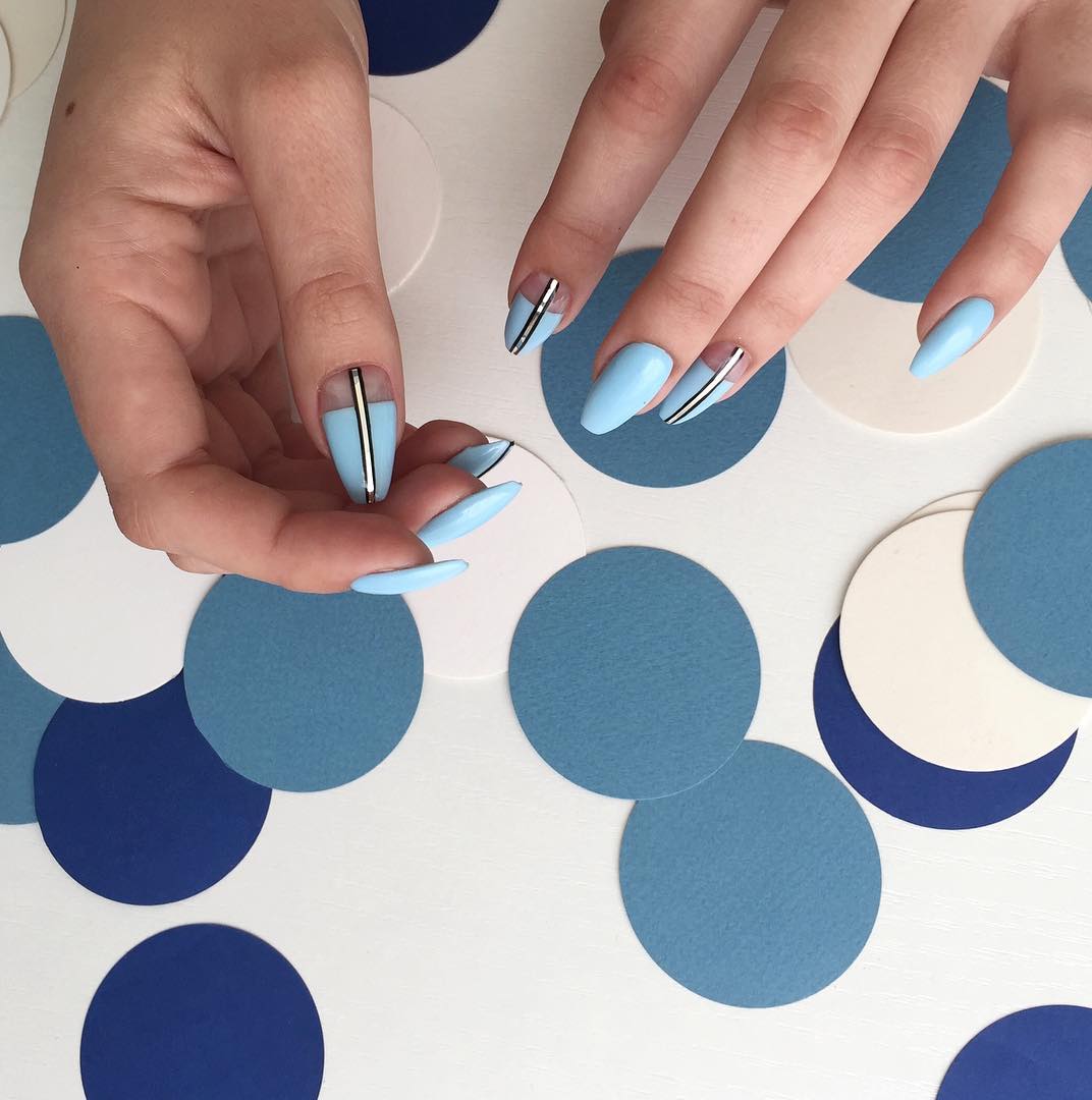 Когда речь идет о полосатом маникюре многие девушки представляют именно морской стиль. Что ж, в 2019 году он все также актуален, поэтому смело выбирайте для себя такой вариант. Лучше всего он подходит для отпуска и поездок на море. Но и для отдыха в городе он также будет прекрасным решением. Главное, подобрать соответствующий образ в схожей цветовой гамме.