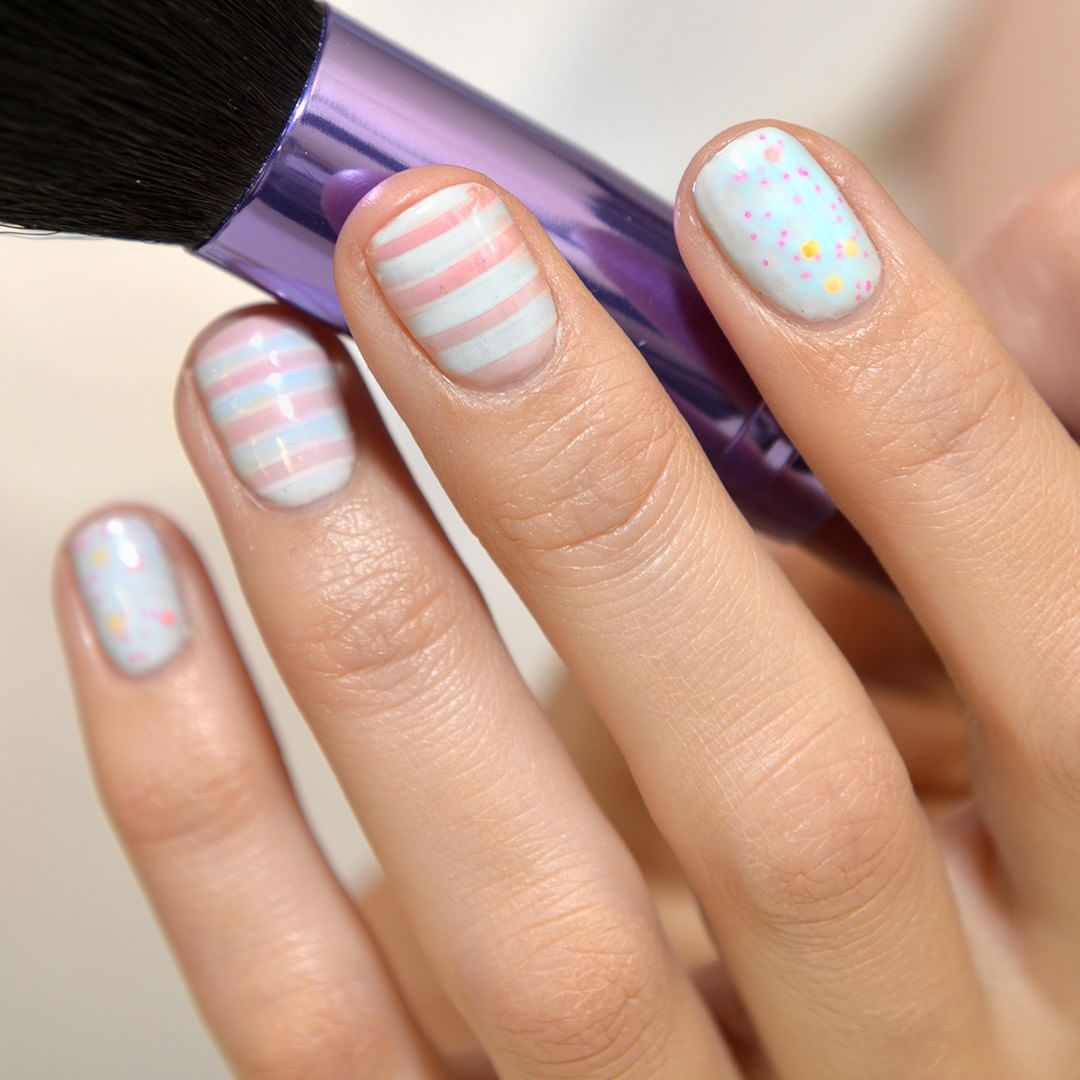 Для создания летнего, игрового настроения будет то что надо! Сочетая сразу три модные техники можно получить уникальный, фееричной красоты дизайн, который прекрасно впишется в легкий и романтичный образ.