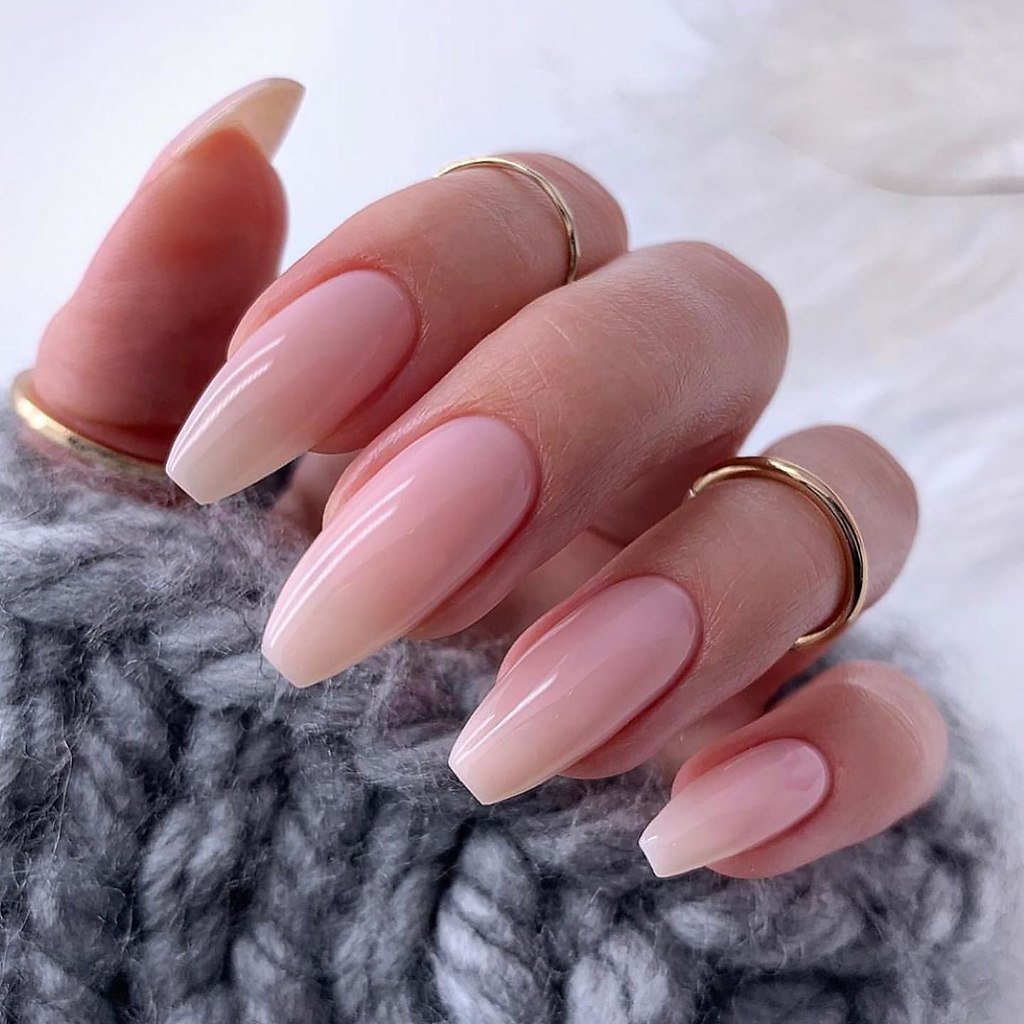 Нюдовый маникюр на длинных ногтях с втиркой.