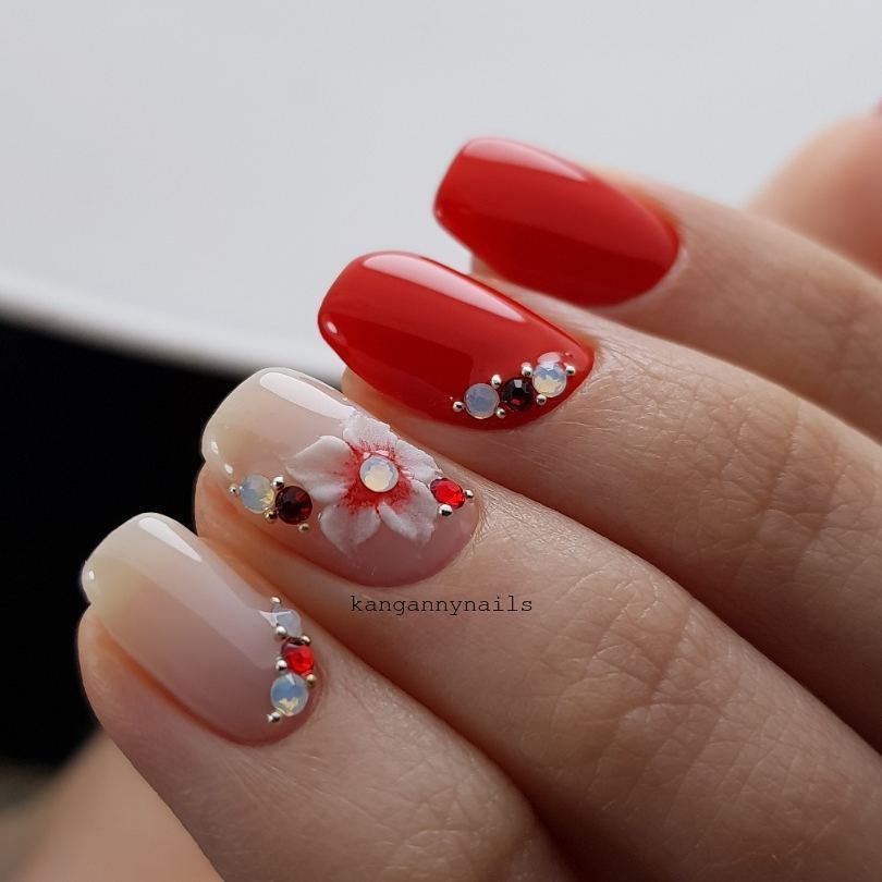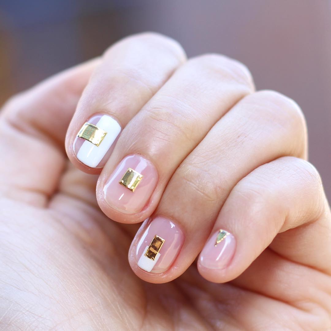- Стразы – их нужно использовать умеренно, чтобы не “утяжелить” ваш маникюр. Слишком крупные будут неуместно смотреться на коротких ногтях. Попробуйте разместить посередине ногтевой пластины по одной стразе – это будет смотреться элегантно и эффектно. Или украсьте ими основание ногтевой пластины. Маникюр со стразами идеально подойдет для торжественных мероприятий.