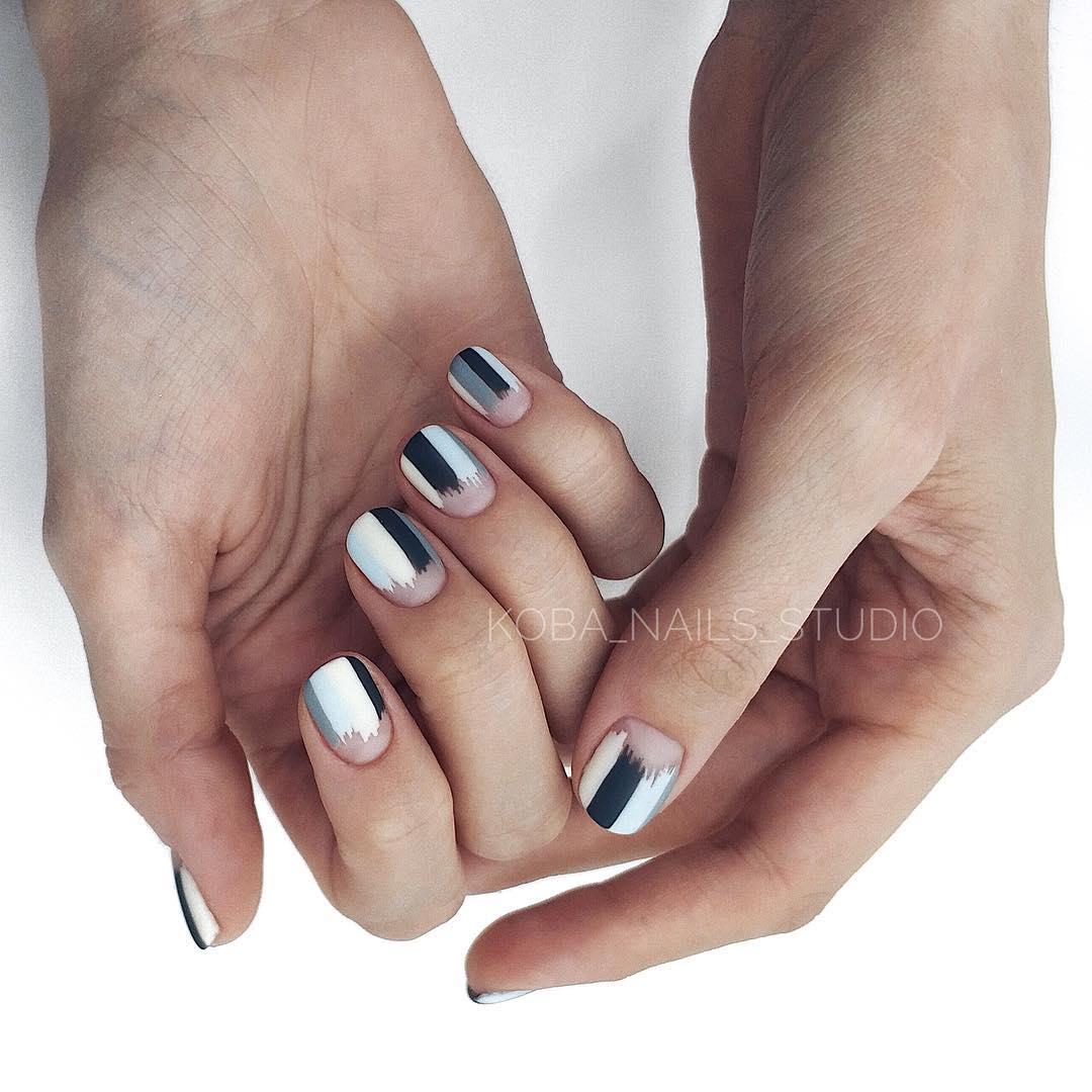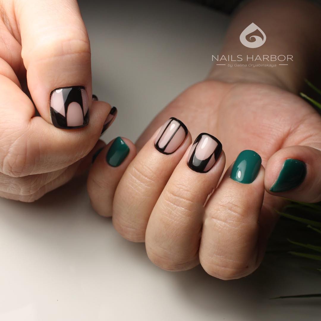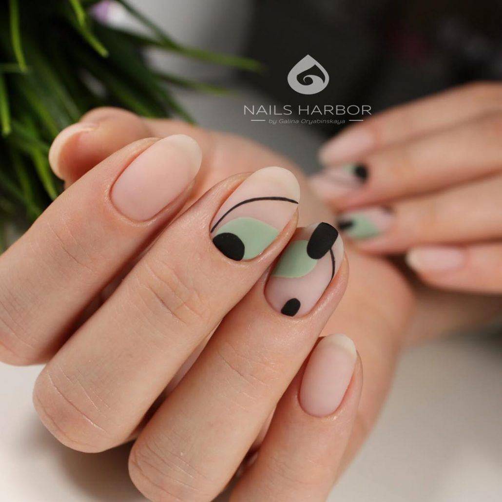 Элементы черного цвета красиво оттеняют натуральные ногти и создают графический акцент, с помощью которого можно зрительно вытянуть форму. Так как сейчас в тренде минимализм, лучше всего изобразить тонкие линии, точки и хаотичные узоры гелем-паутинкой.