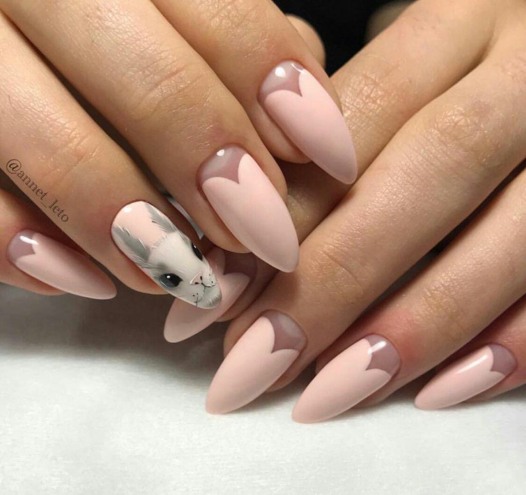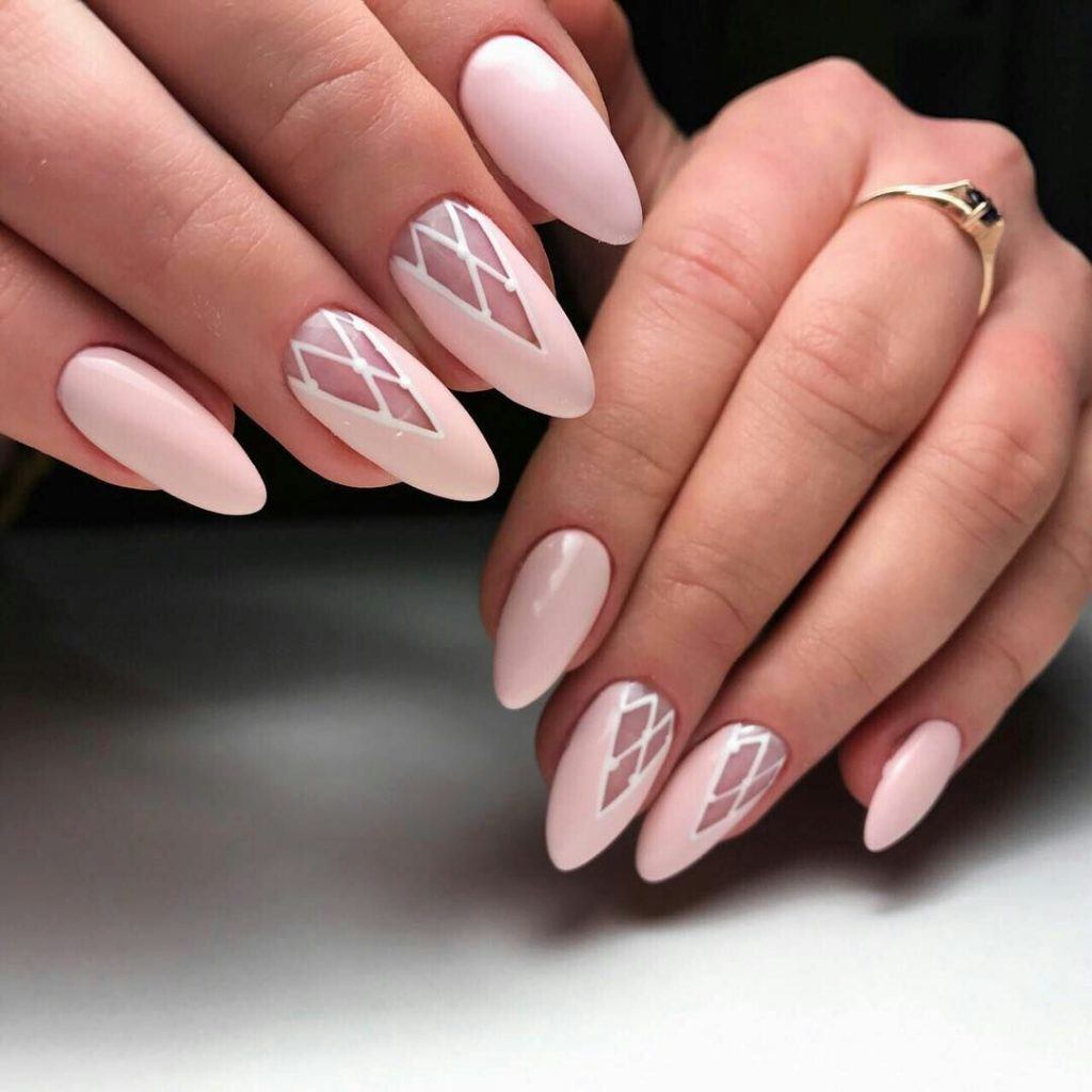 Для миндалевидной формы характерно небольшое заострение к кончику ноготка. Такая форма считается универсальной, позволяет воплотить любые идеи дизайна, в том числе бесцветного фона.