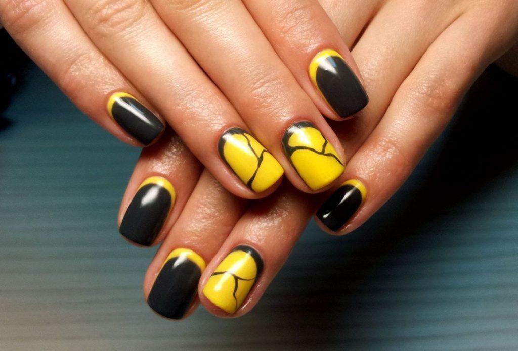 Самый солнечный оттенок прекрасно сочетается с самым темным черным. В данном гамме подложкой могут выступать оба цвета, и в каждом варианте черно-желтый маникюр будет смотреться выигрышно. Вариаций тут масса: