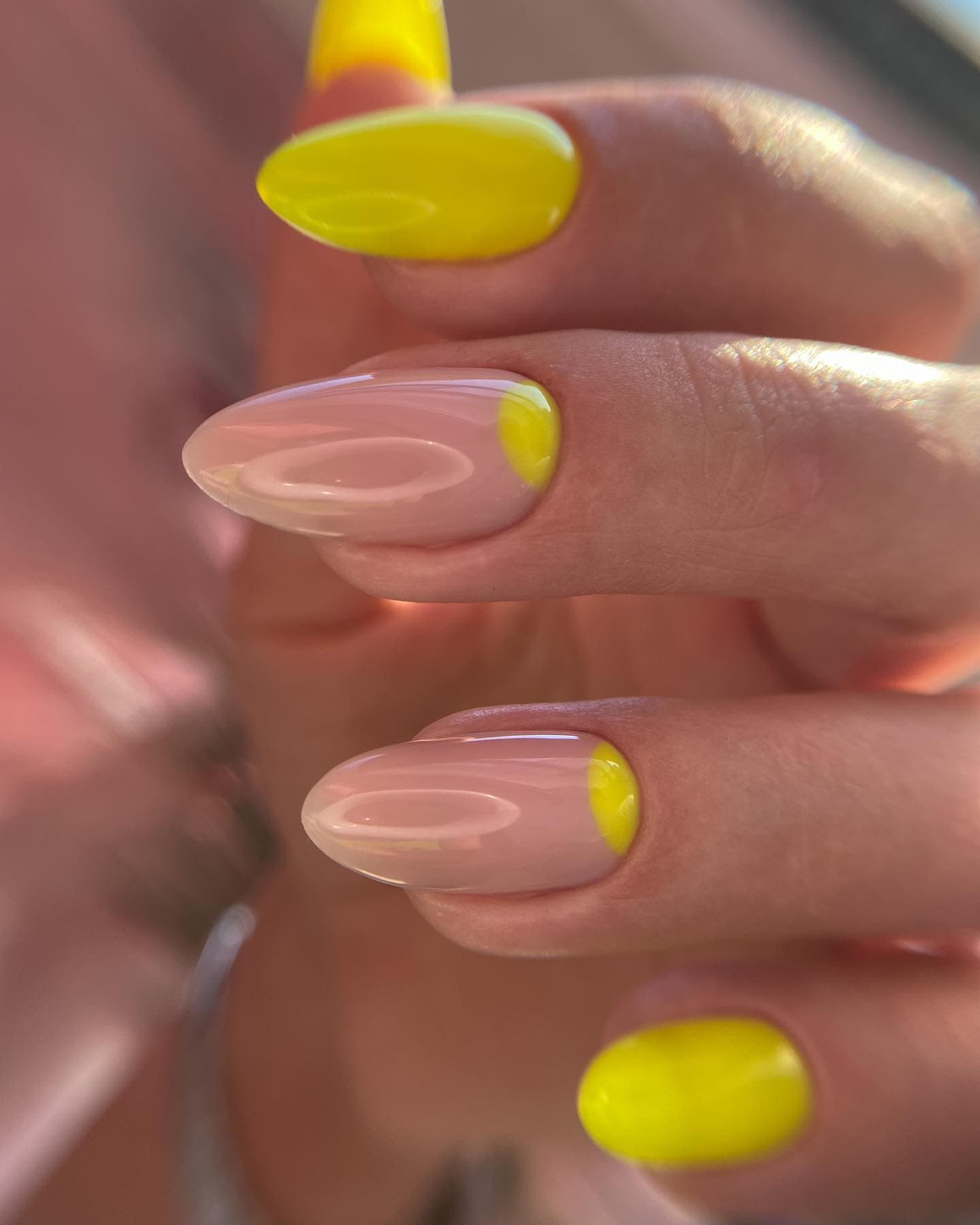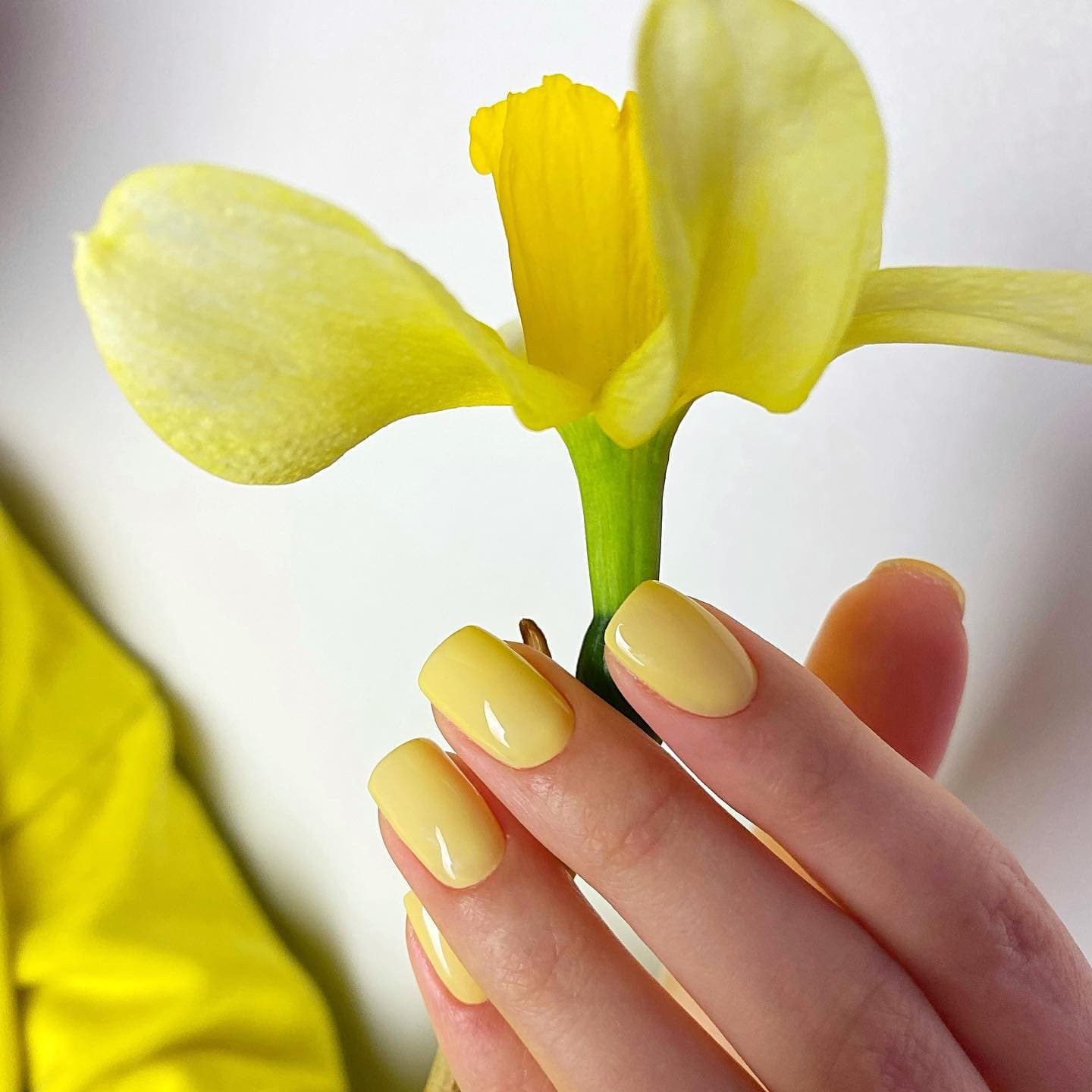 Все дело в том, что у желтого множество подтонов и оттенков — об этом мы уже говорили выше. Поэтому просто “сдать” конкретные цвета не получится. Тем не менее, мы выбрали несколько самых универсальных комбинаций с разными оттенками желтого, которые будут круто смотреться на ногтях, и расскажем вам о них ниже.
