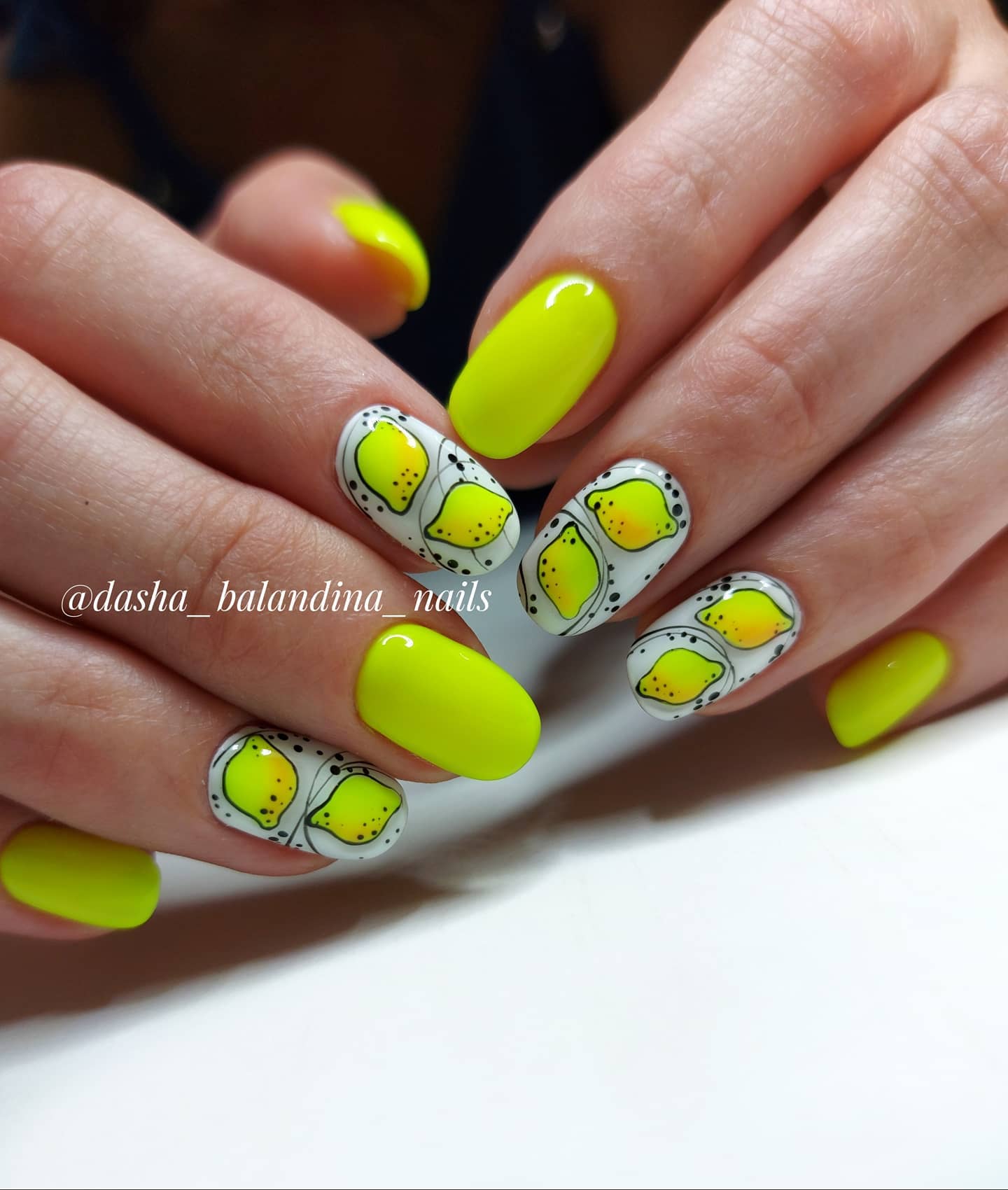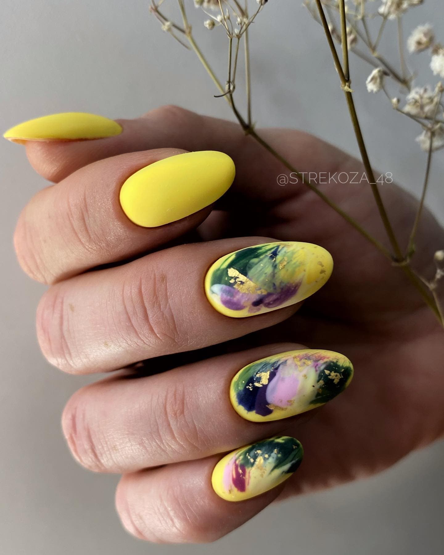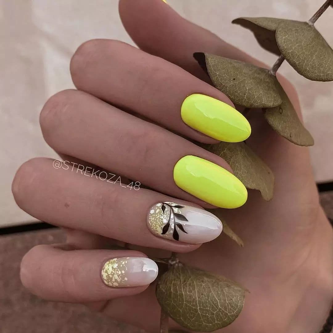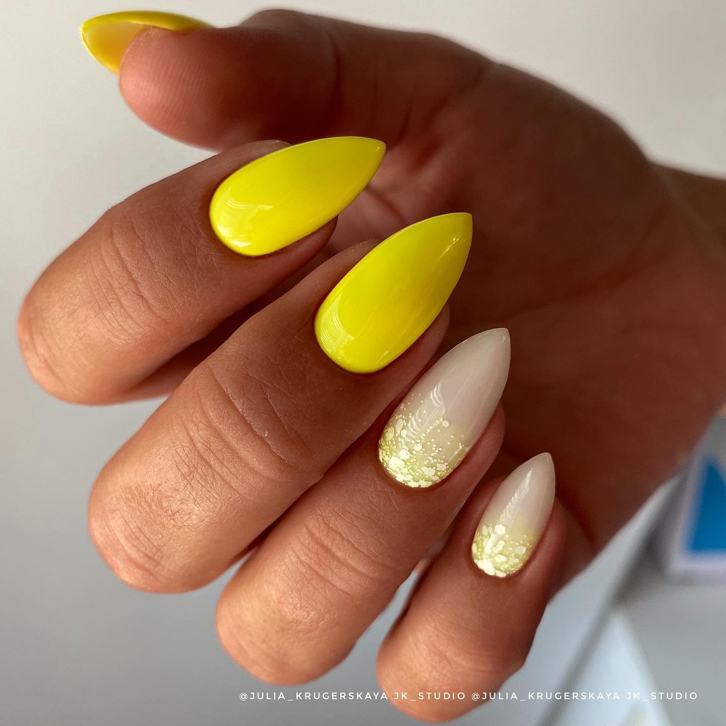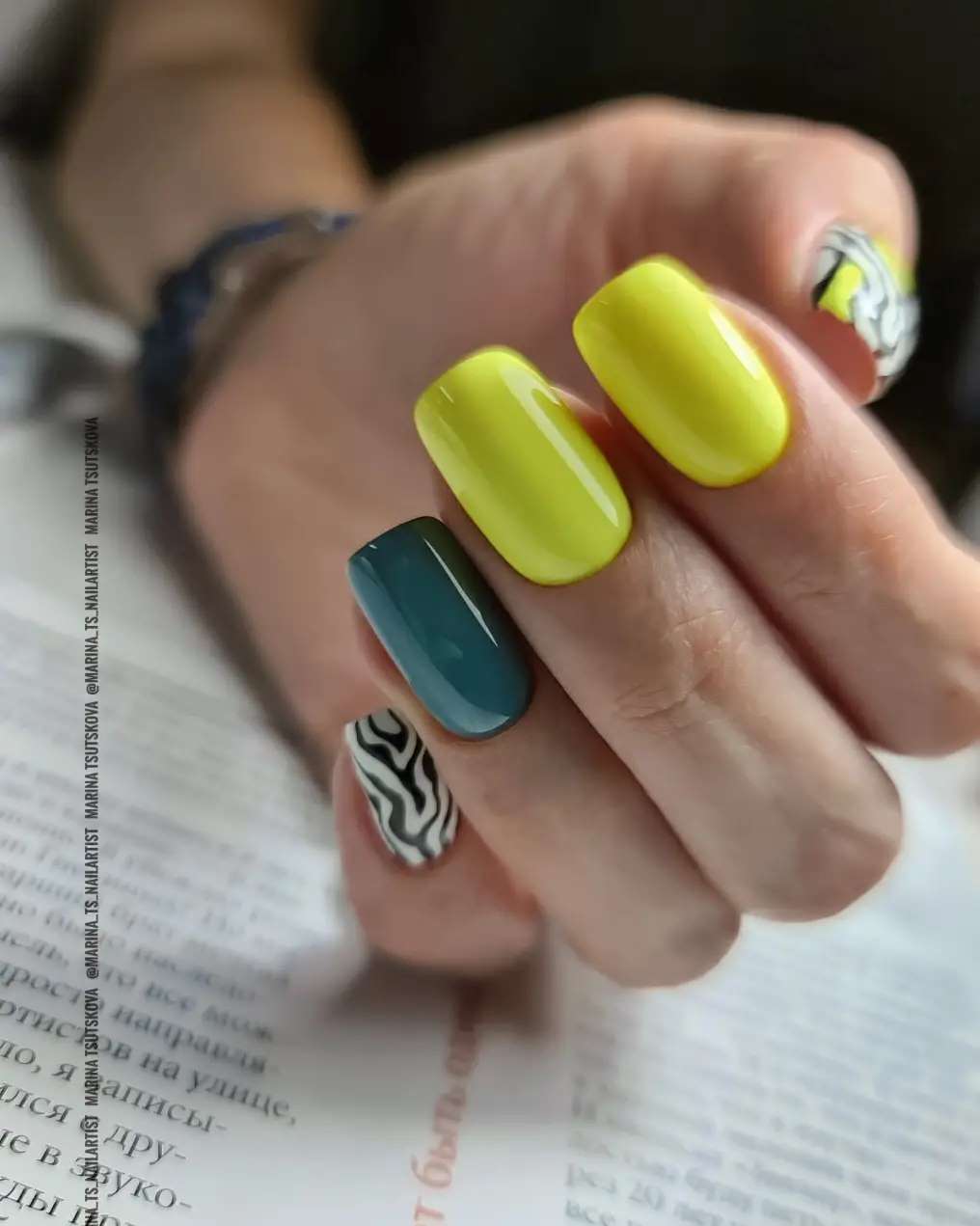 Обратите внимание на фото желтого маникюра с холодным сочетанием оттенков
