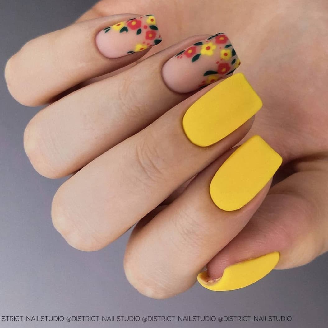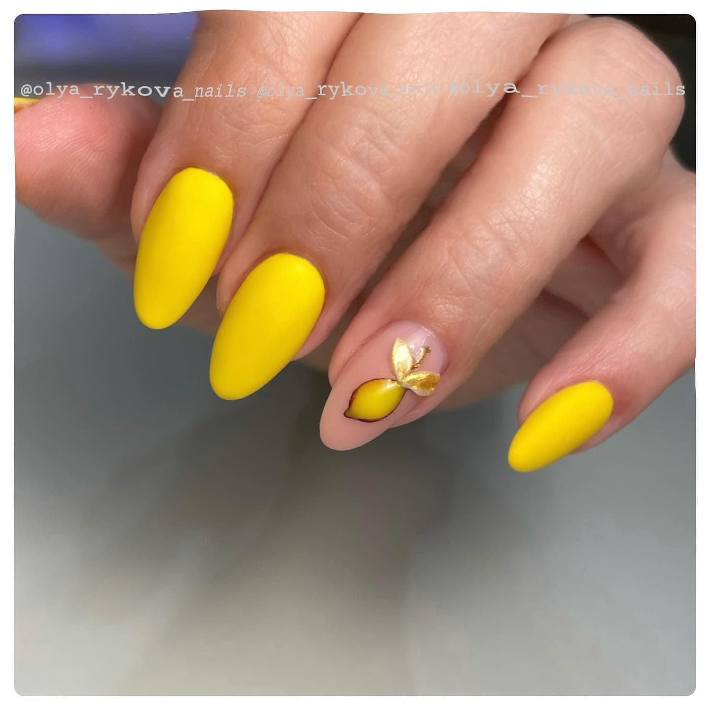 Желтый цвет великолепно смотрится на ноготках не только в привычном глянцевом виде