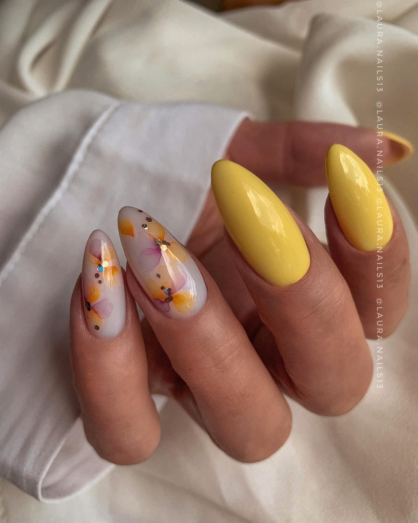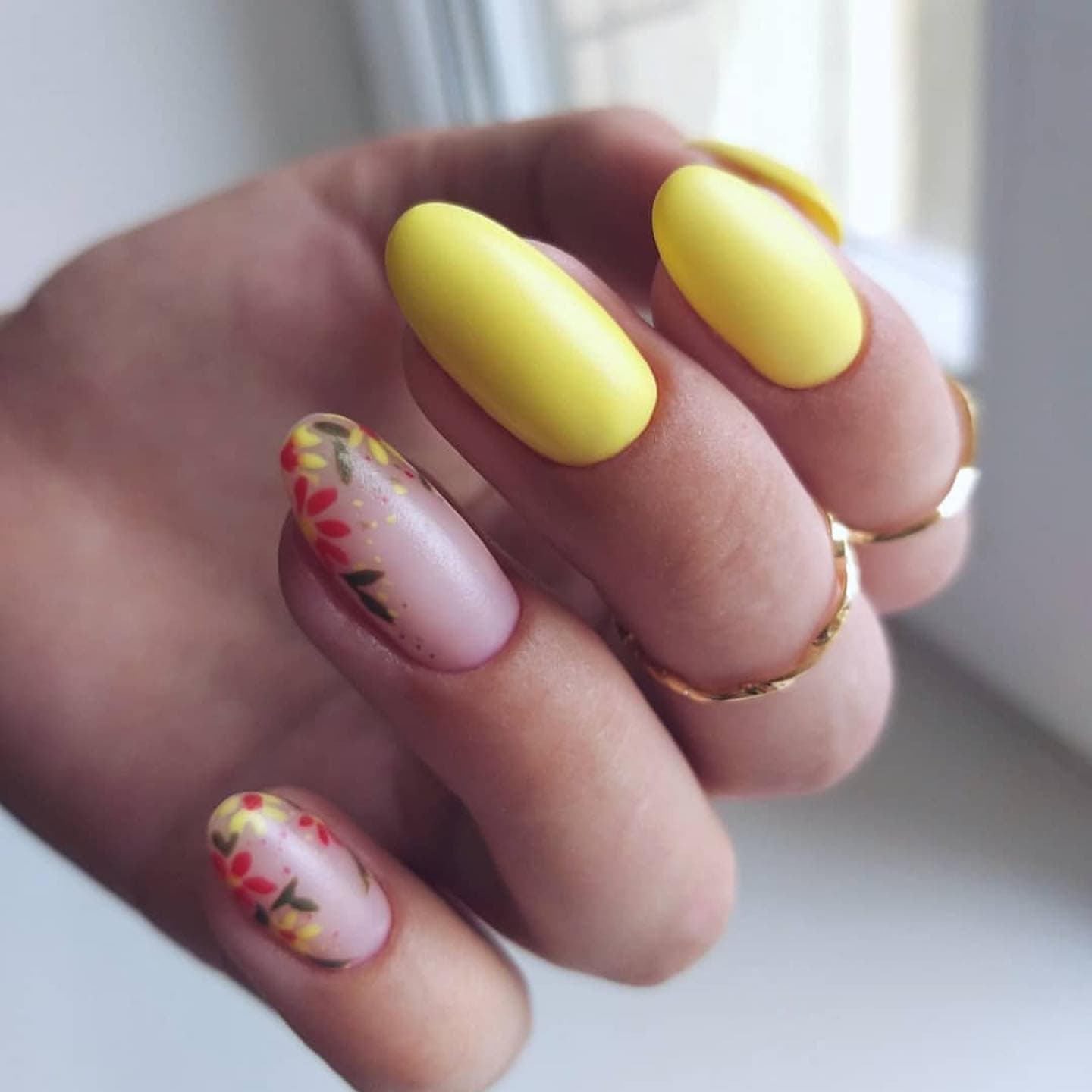 Желтый — далеко не самый популярный и универсальный в плане сочетаемости цвет. С некоторыми оттенками могут выйти неудачные комбинации, если не до конца продумать свой нейл-образ