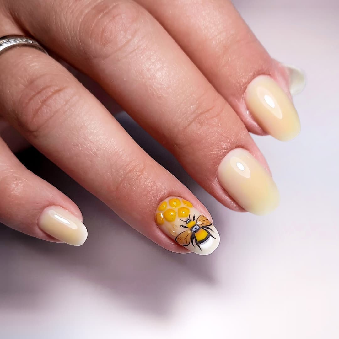 Если же по ряду причин вы не можете позволить излишнюю пестроту в своем образе, скажем по силу требований строго дресс-кода, это не повод отказываться от желтого цвета в маникюре