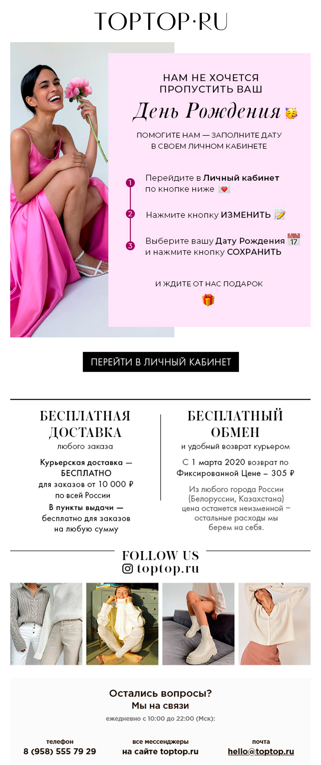 Исключение: если клиент не заполнил дату рождения в личном кабинете. Через сутки после получения первого письма отправляем напоминание:
