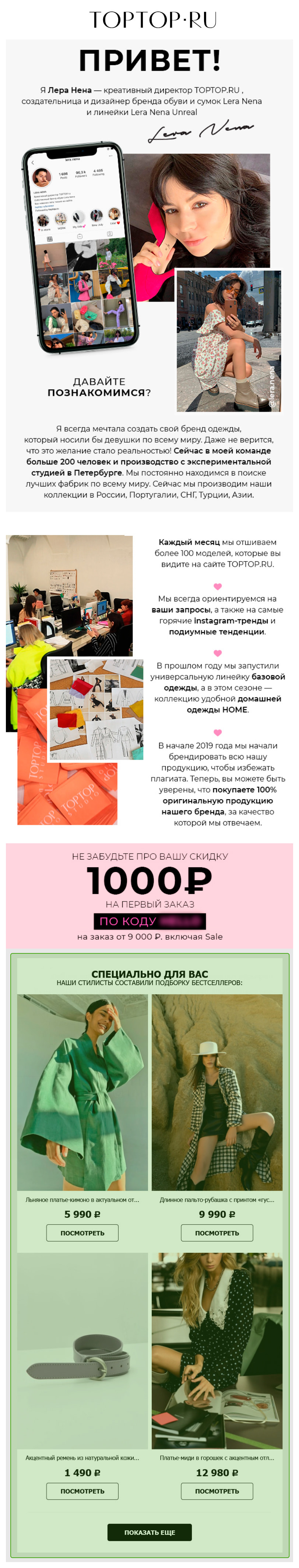 Письмо № 2 в цепочке для подписчиков с промокодом на первый заказ и персональными рекомендациями
