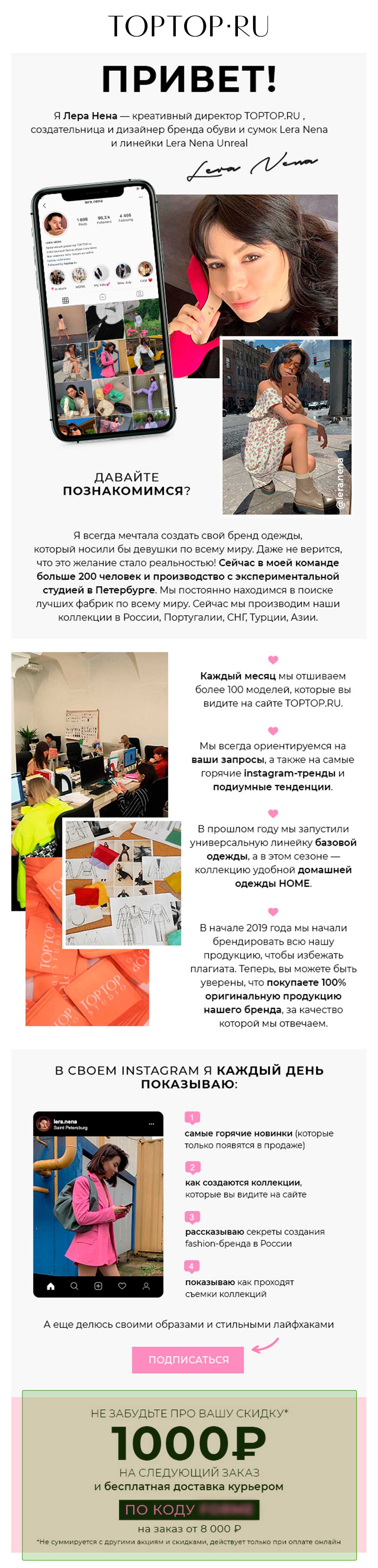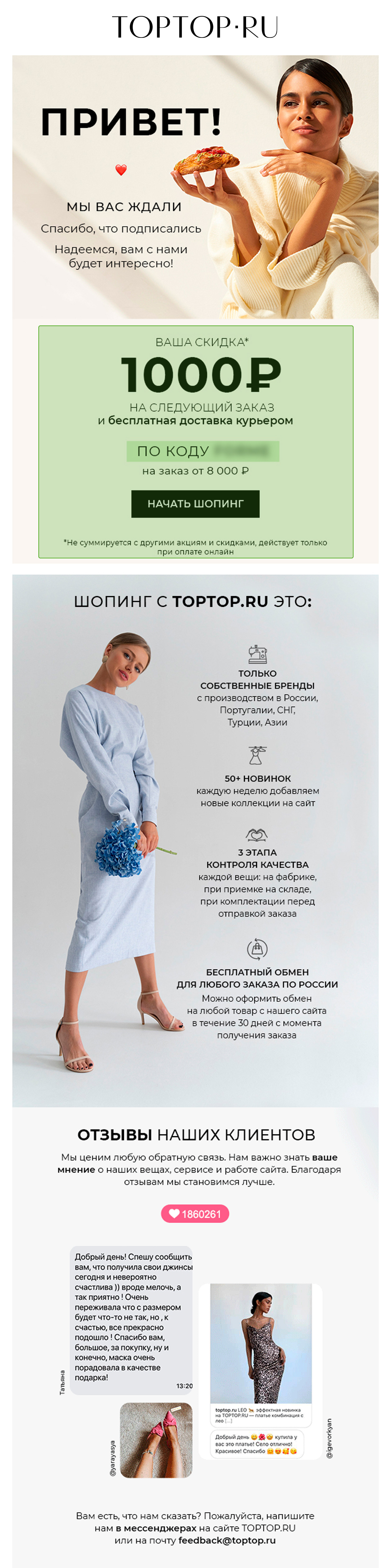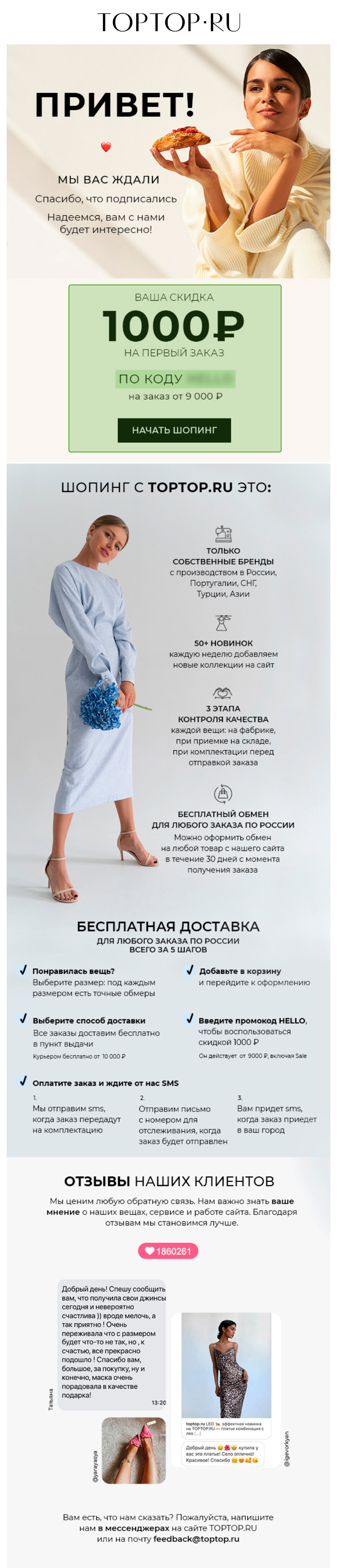 Письмо № 1 в цепочке для подписчиков с промокодом на первый заказ