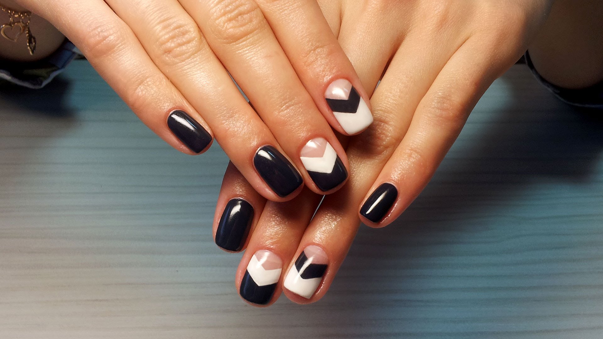 Такой дизайн также зрительно удлинит ногтевую пластину, а использование контрастных цветов привлечет внимание и заставит говорить о себе