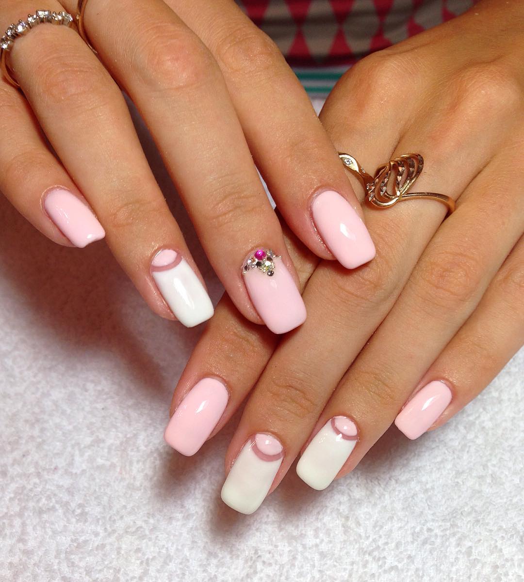 Нежный персиковый цвет или яркая «фуксия» — любые оттенки розового цвета подчеркнут изящество дуг или контура лунулы.