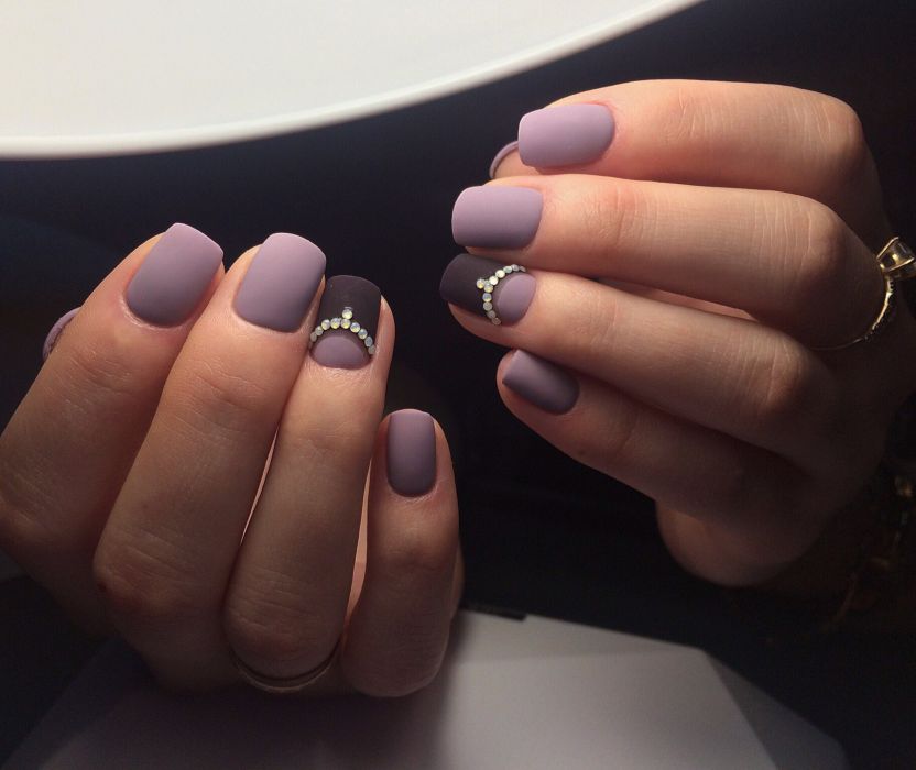Матовое покрытие позволит вам выделиться из толпы, но не смотреться чересчур экстравагантно. Серый матовый маникюр лучше выполнять в темных оттенках, так дизайн будет выглядеть утонченно и изящно. Такой нейл-арт выбор уверенных в себе особ. Бархатистый дизайн в светлых тонах признак романтично настроенных девушек.
