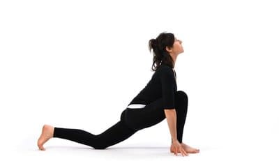 Поза всадника. На выдохе нога выталкивается вперед и спина выгибается.