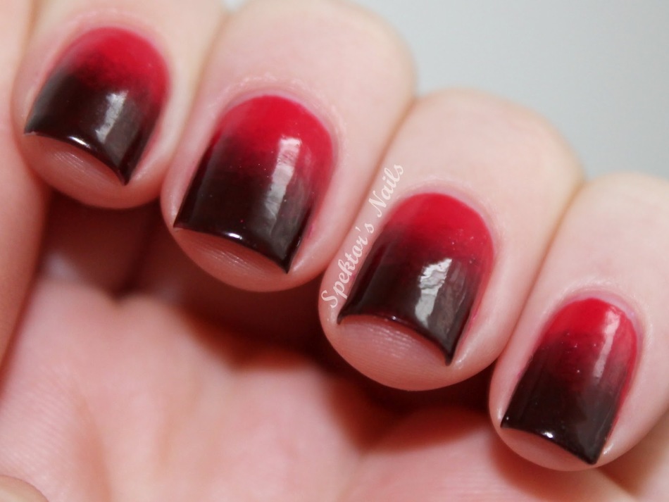ноготь, накрашенный при помощи губки. Двойной цвет
