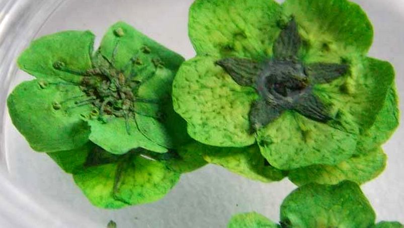 Вспомните, как в школе вы делали гербарии. В книгу помещались разные листики, лепестки, цветы и тычинки. К сожалению, после сушки растения теряют контрастные тона и становятся более блеклыми. Для того, чтобы добиться такого же насыщенного оттенка как в магазинах, нужно аккуратно промокнуть сухоцветы тампоном в краску или аккуратно растушевать на них цветные тени с помощью специального аппликатора.