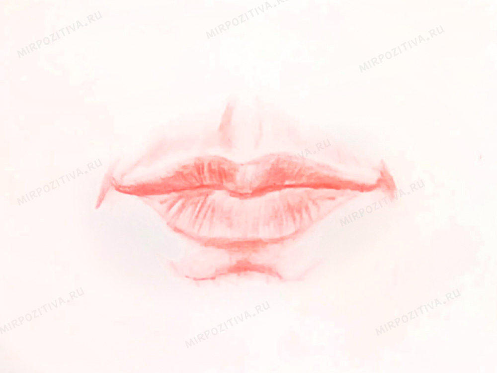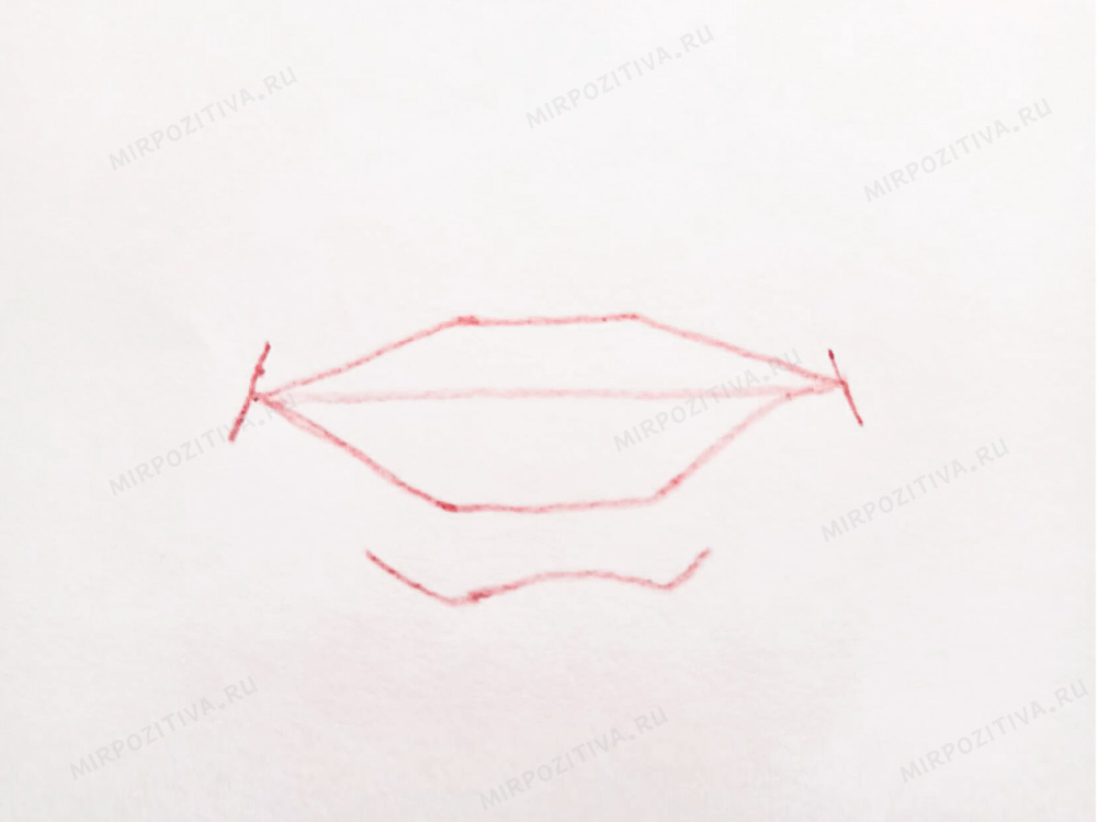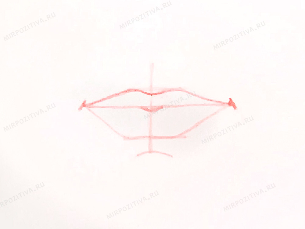 Новичкам сложно сразу нарисовать тонкие и четкие линии, поэтому можно расставить точки, а по ним уже сделать контур. Его следует начинать в верхней губы от центра к краям, сначала с одной стороны, а затем с другой. Точно также следует сделать контур на нижней губке.
