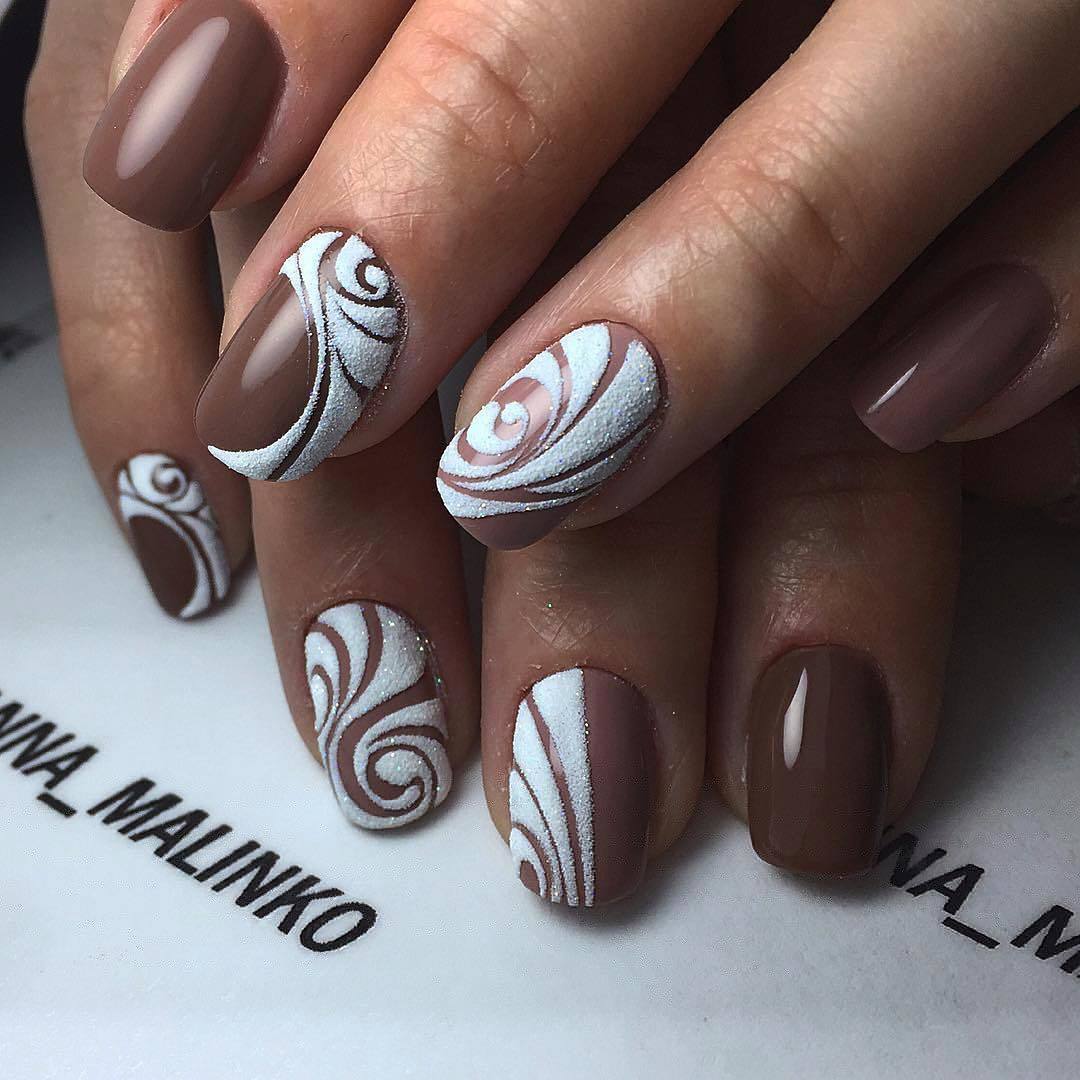 С помощью тонкой кисточки можно нарисовать на ногтях любой рисунок — листики, цветочки, праздничный декор. Например, перед Днем Святого Валентина популярны сердечки, а перед Новым Годом — снежинки и елочки.