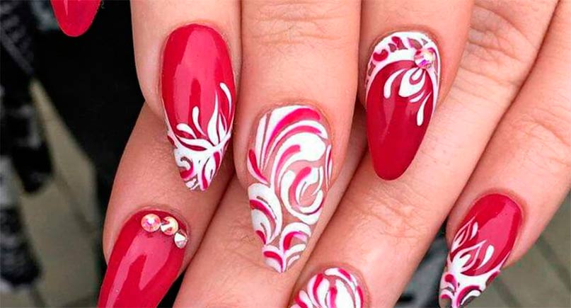 С длинными острыми коготками забудьте об обычном френче, ведь здесь выбор дизайна улыбки поистине безграничен. Например, можно сделать аквариумный дизайн с самыми разными элементами, сделать френч из неровных полосок разных или похожих оттенков, а также – украсить всё это дело блёстками или стразами.