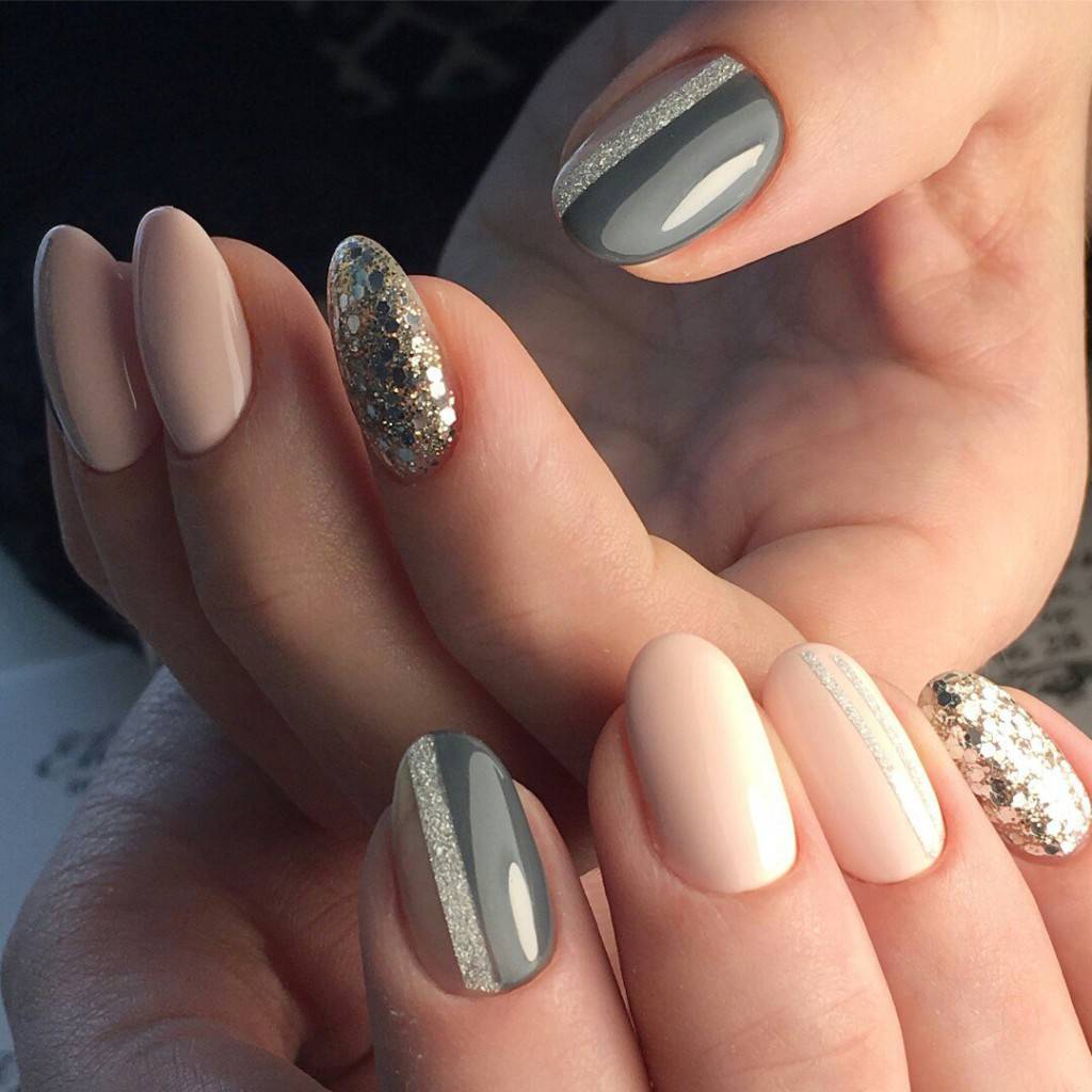 - Выделение другим цветом ногтей на среднем и безымянном пальцах или плавный переход на одном из ногтей каждой руки;