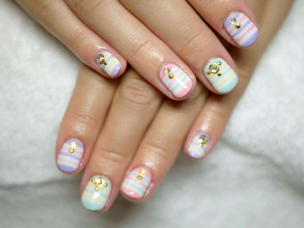 Если у Вас достаточно сноровки, то можете расписать ногти разными цветами. Если же Вы новичок в искусстве маникюра, и Вам тяжело это сделать самой, то ограничьтесь двумя цветами или одним, как при французском маникюре, главное, чтобы все было сделано аккуратно.