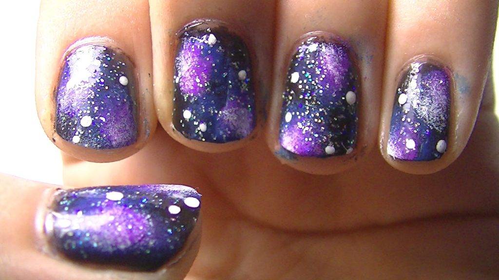 Галактика на ногтях понравится всем любителям фантастики. Галактики, параллельные вселенные и самые яркие звезды смогут отразиться на пальчиках. Творить космический маникюр можно как с обычными лаками, так и с гель-лаками. Как выполнить: