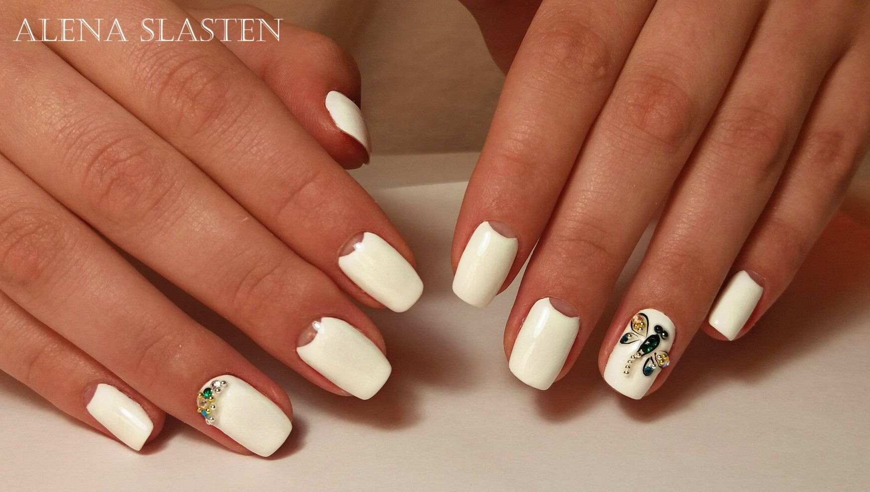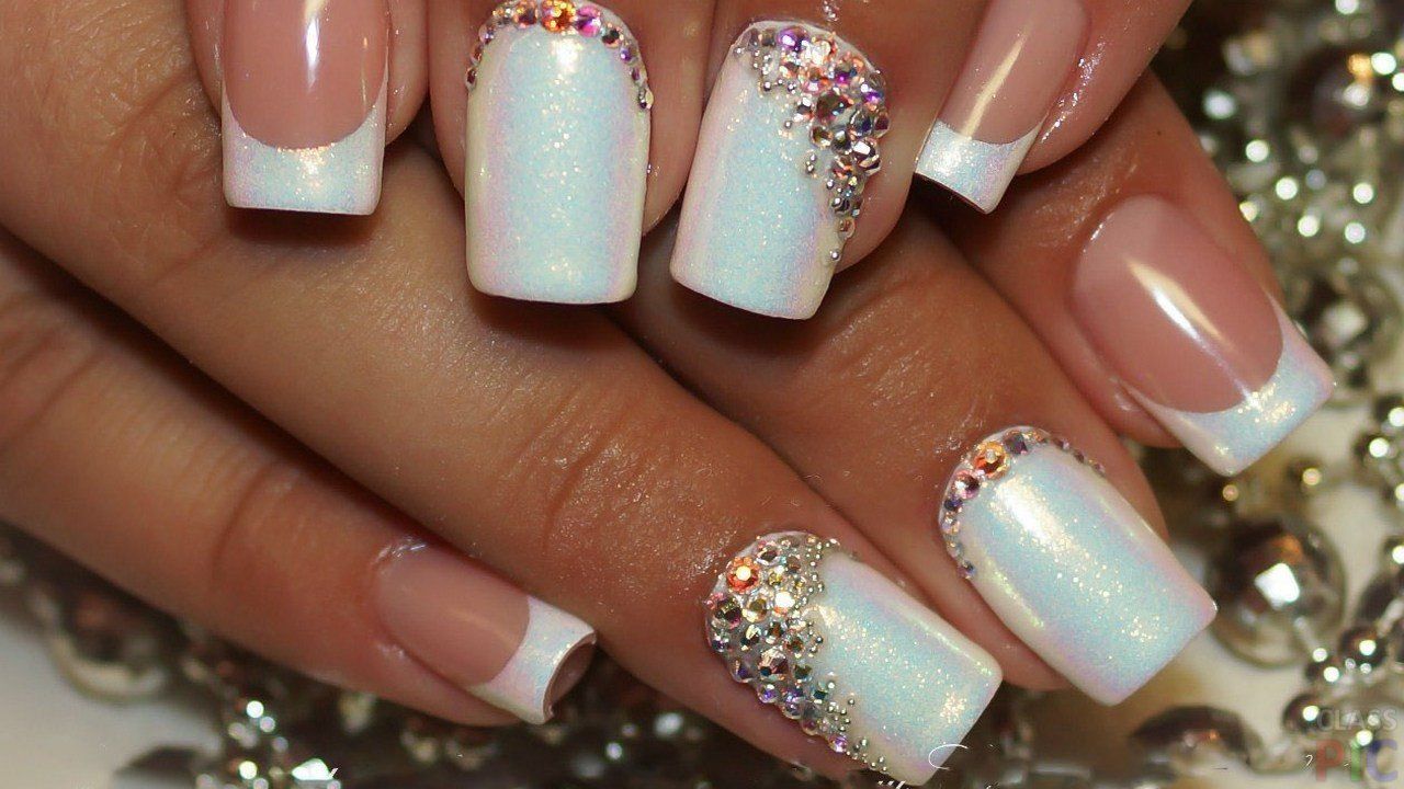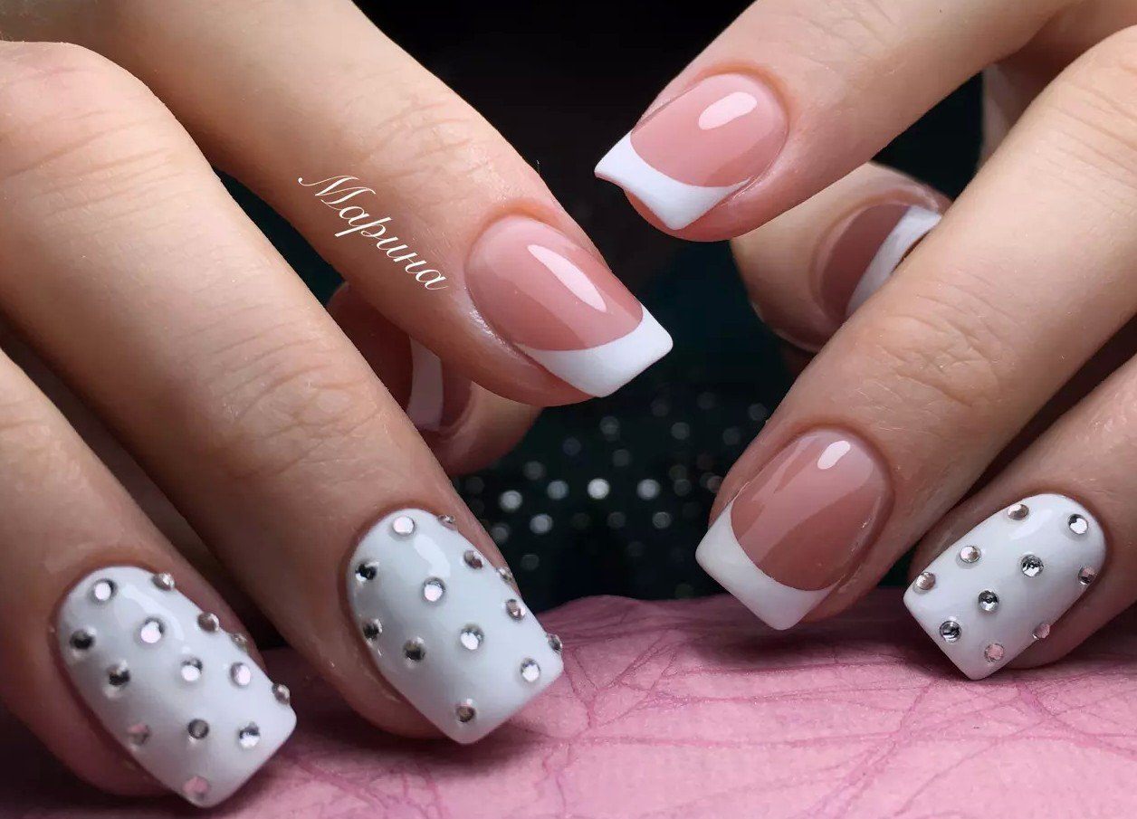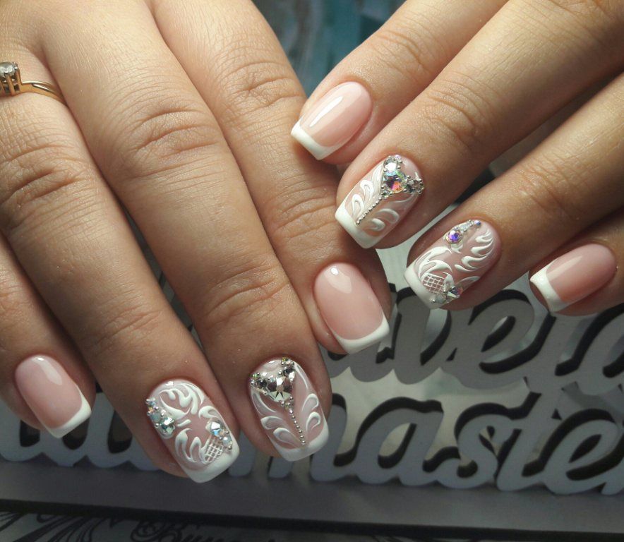 Для сдержанного образа в одежде подойдет маникюр, украшенный стразами и рисунками. Смотрите самую большую подборку из фото новинок нежного маникюра для выпускниц.