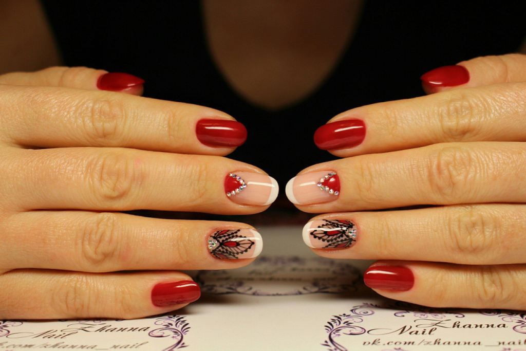 - Длина ногтей. Не стоит думать, что для праздничного маникюра подходят исключительно длинные ногти. Ухоженные короткие ногти прекрасно подходят для выполнения красивого однотонного, французского, геометрического, аппликационного и многих других видов маникюра.