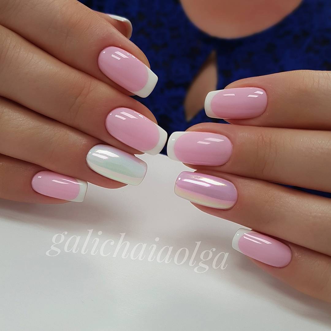 Оттенки маникюра могут быть сдержанными пастельными и более яркими насыщенными в тон к основному наряду. Но главная деталь этого дизайна остается неизменной – акцентированный край ноготка, который делает его таким узнаваемым.