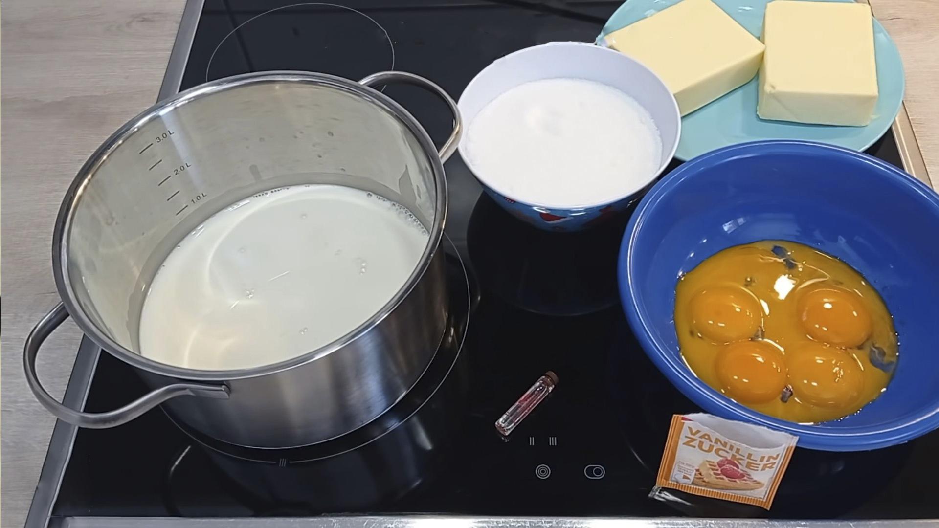 Подготавливаем ингредиенты. Молоко переливаем в кастрюлю с толстым дном.