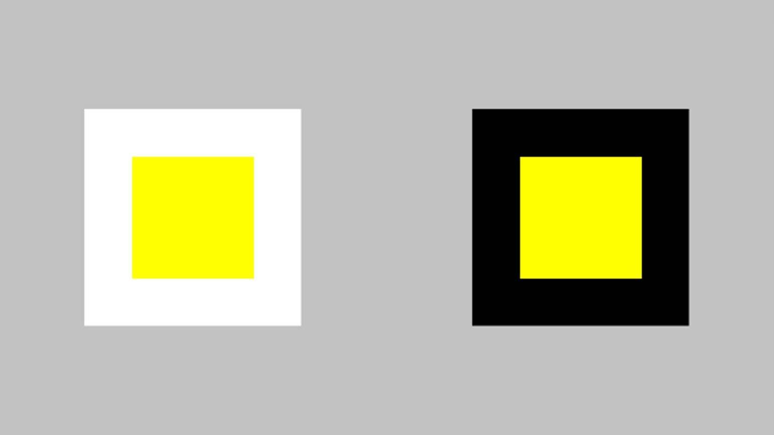 Жёлтый цвет на белом фоне кажется темнее, производит впечатление нежного тепла. На чёрном фоне он кажется светлым и приобретает агрессивный характер. Иллюстрация: Skillbox Media