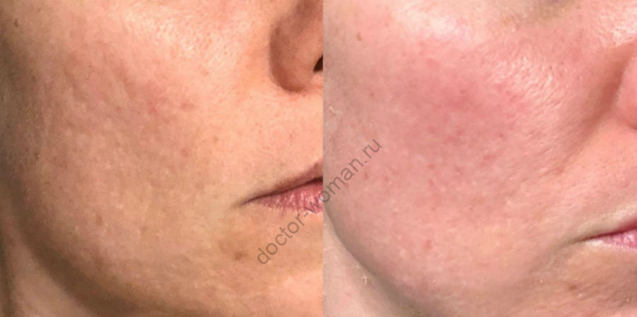 Результат после одной процедуры кислотного пилинга до и после