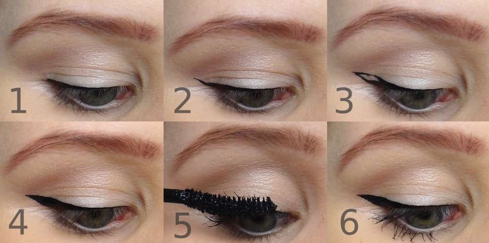 - рисуйте стрелку не от внутреннего угла, а с середины глаза, чтобы визуально скрыть опущение внешнего его края.