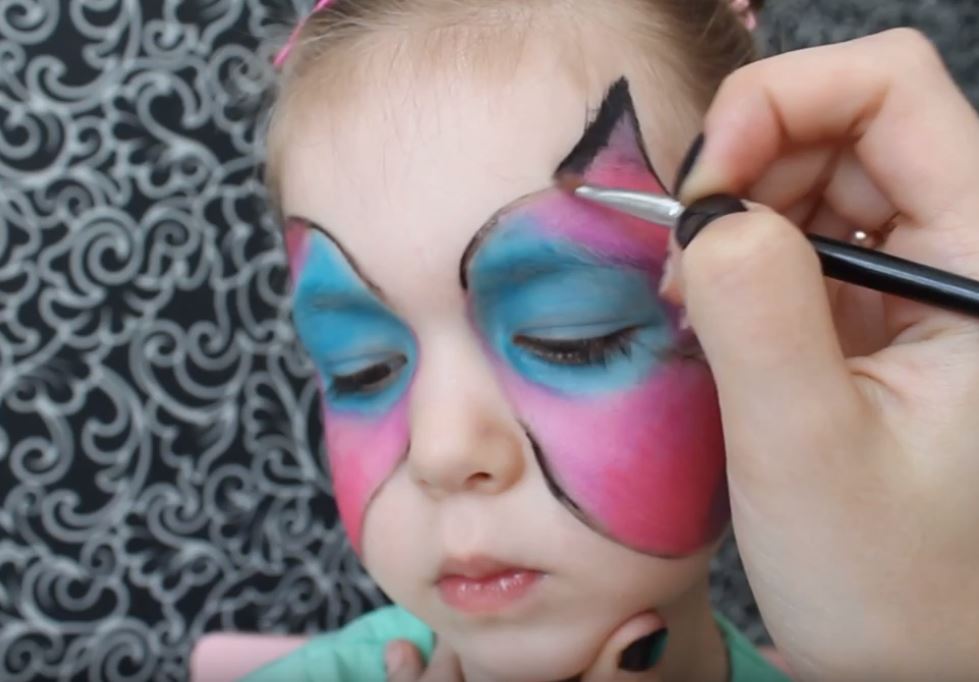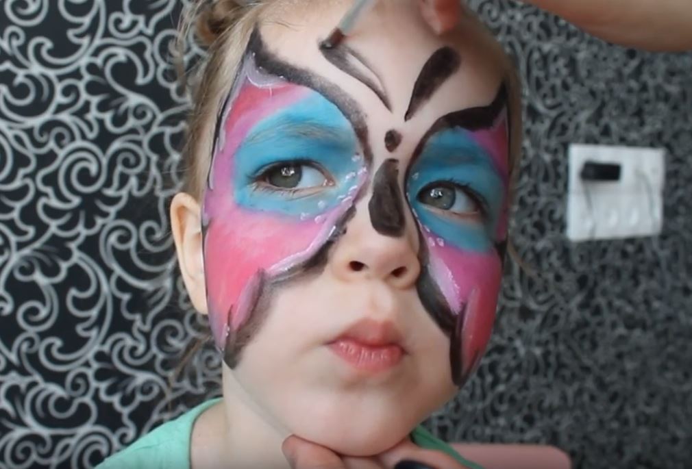 Не стоит использовать в качестве дополнительного декора пайетки, так как они могут колоть нежную детскую кожу. Бабочка обязательно должна быть разноцветной. Допускаются любые яркие краски (розовая, салатовая, оранжевая) и самые затейливые узоры. Наносить базу нужно строго до линии роста волос, иначе могут остаться некрасивые белые пятна. Если ребенок носит челку, под ней лицо тоже тщательно прокрашивается. Во время работы волосы на лбу мальчику можно заколоть, девочке — надеть ободок.