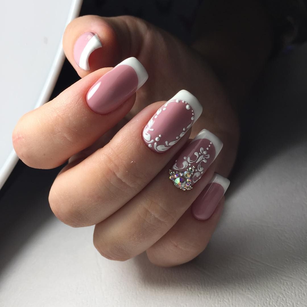Особенно востребованы розовый, голубой и зелёный цвета. Не следует забывать про орнаменты, что хорошо будут смотреться на французском маникюре, освежая нестареющую классику.